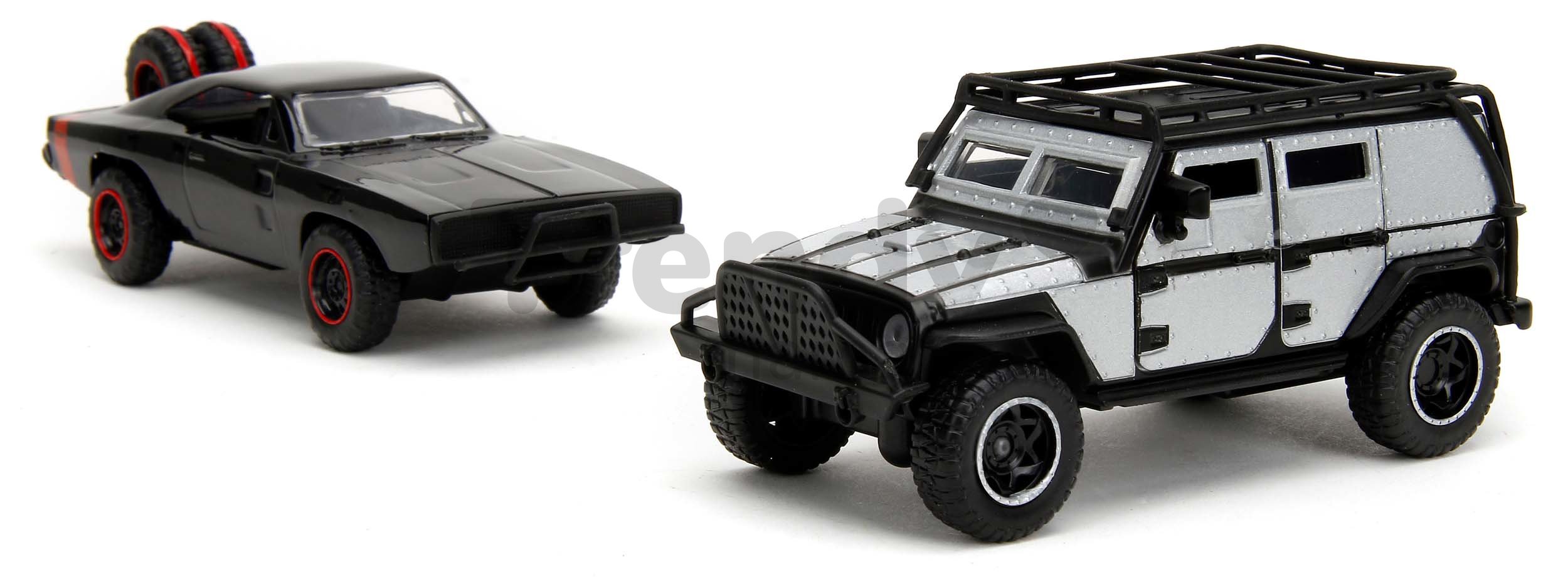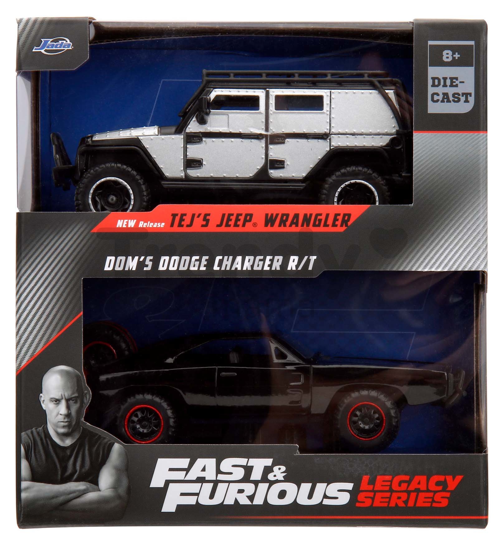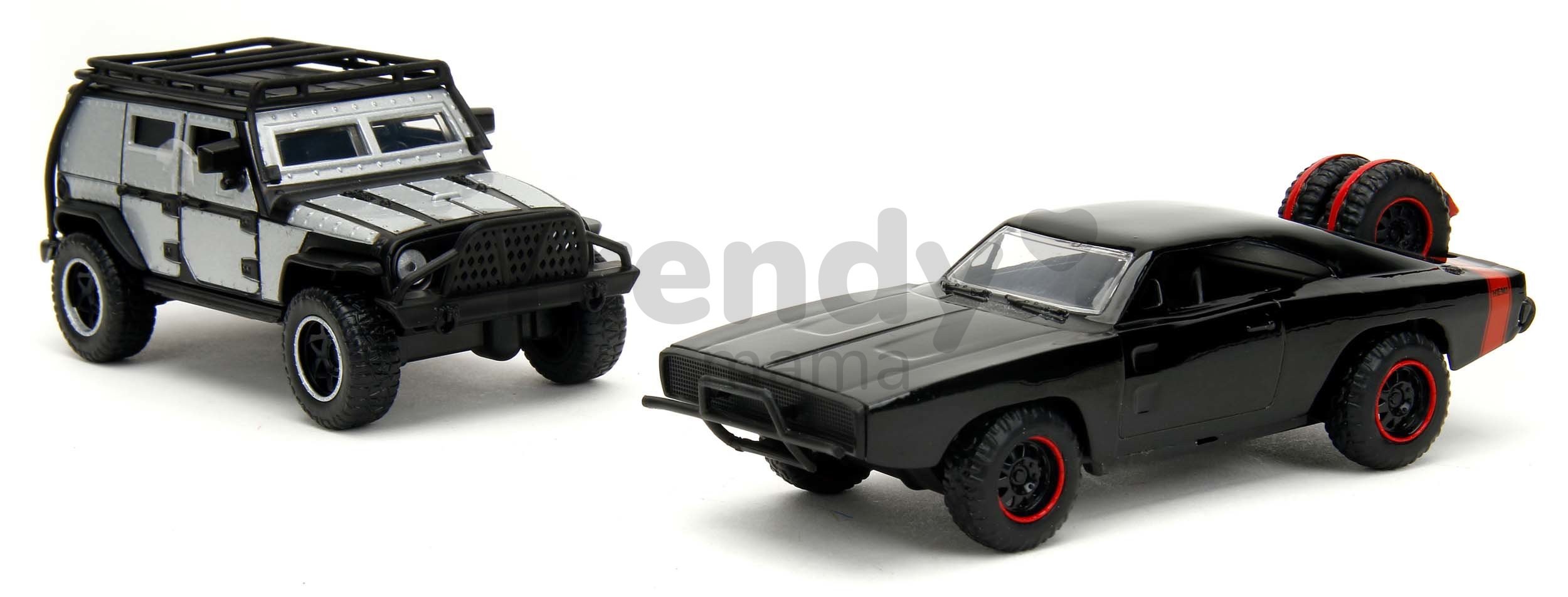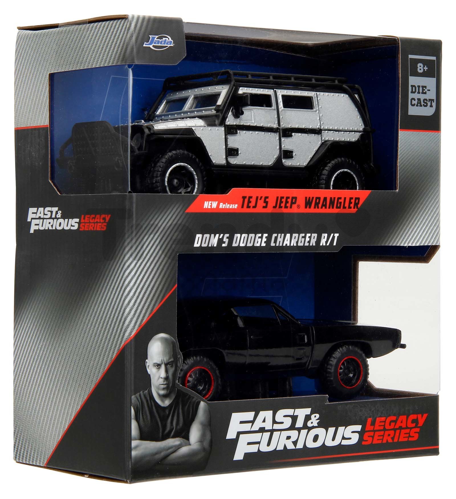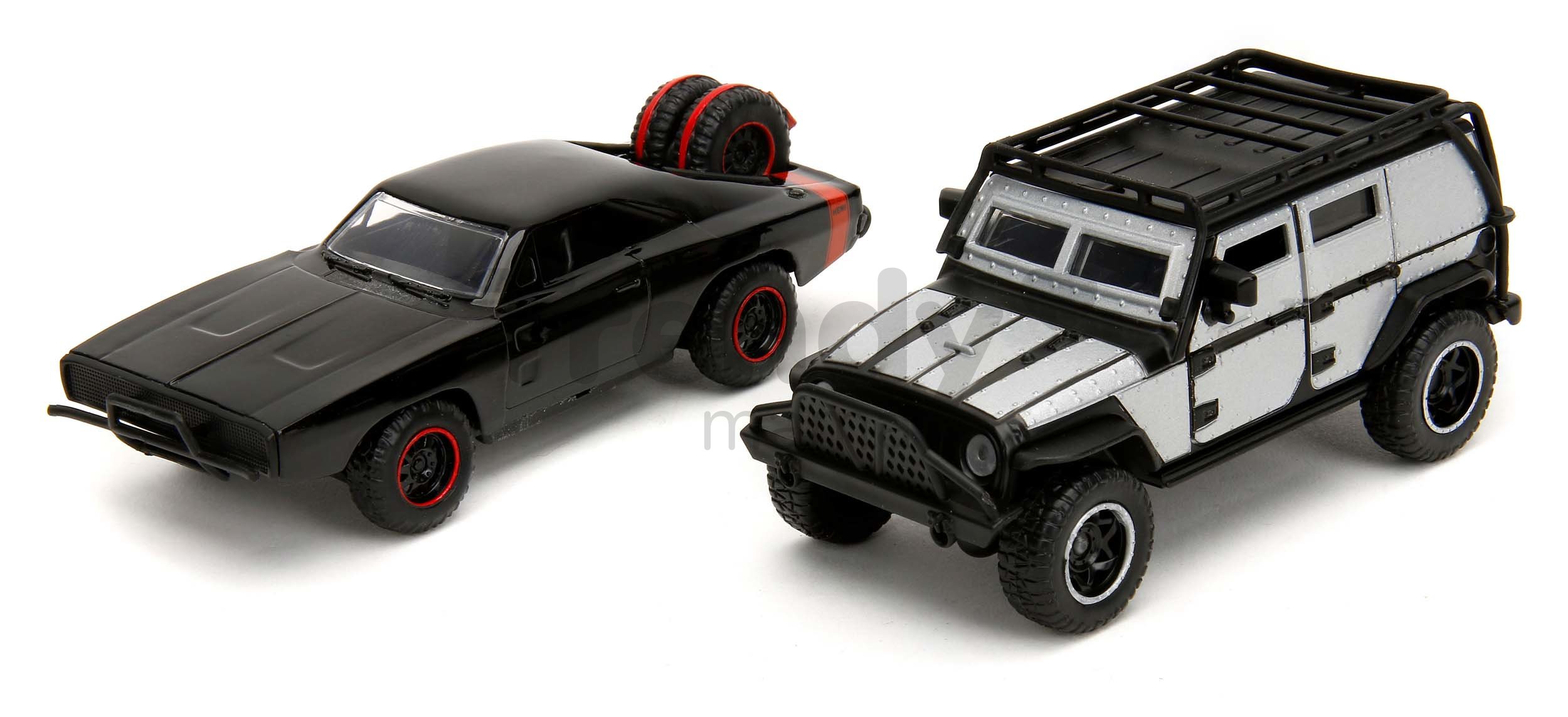 Sada autíčok Twin Pack Jada poteší všetkých zberateľov modelov a deti od 8 rokov. V súprave sa nachádzajú kovové modely autíčok Jeep Wrangler a Dodge Charger 1970, ktoré môžete poznať z filmov Fast & Furious. Realistické modely autíčok s dĺžkou 13 cm očaria najmä chlapcov, sú vybavené otvárateľnými dverami. Precízne vypracované detaily na autíčkach s filmovým motívom Rýchlo a zbesilo prinesú deťom pri hre veľa radostných zážitkov.
