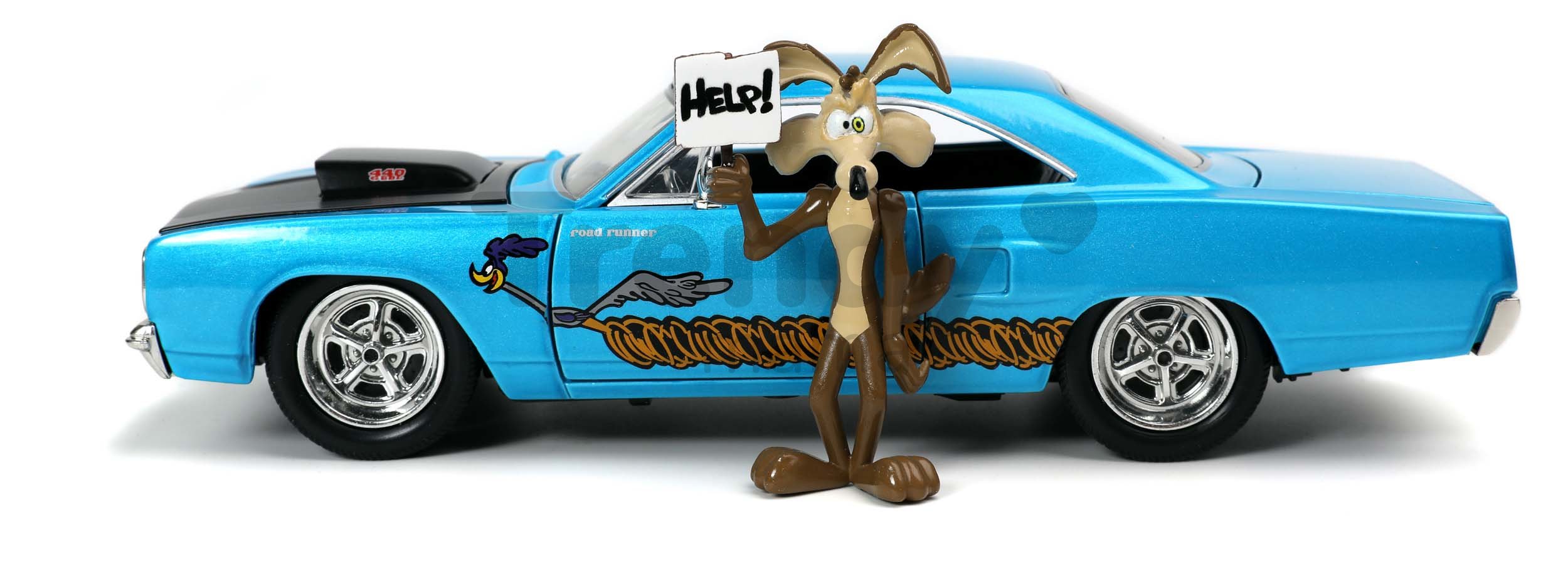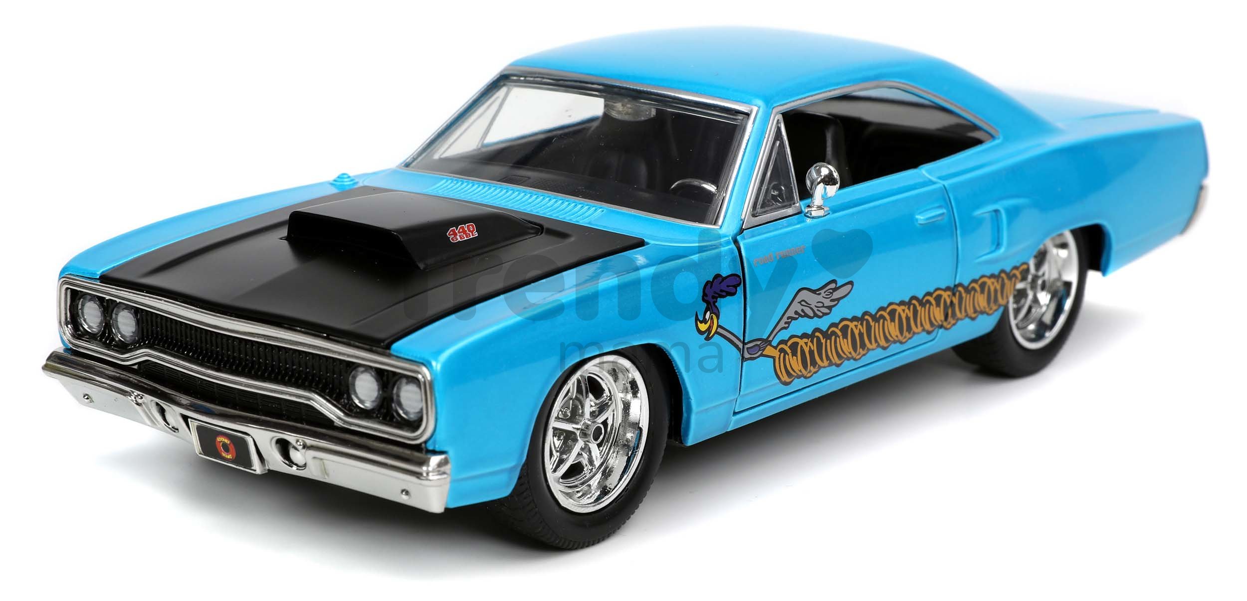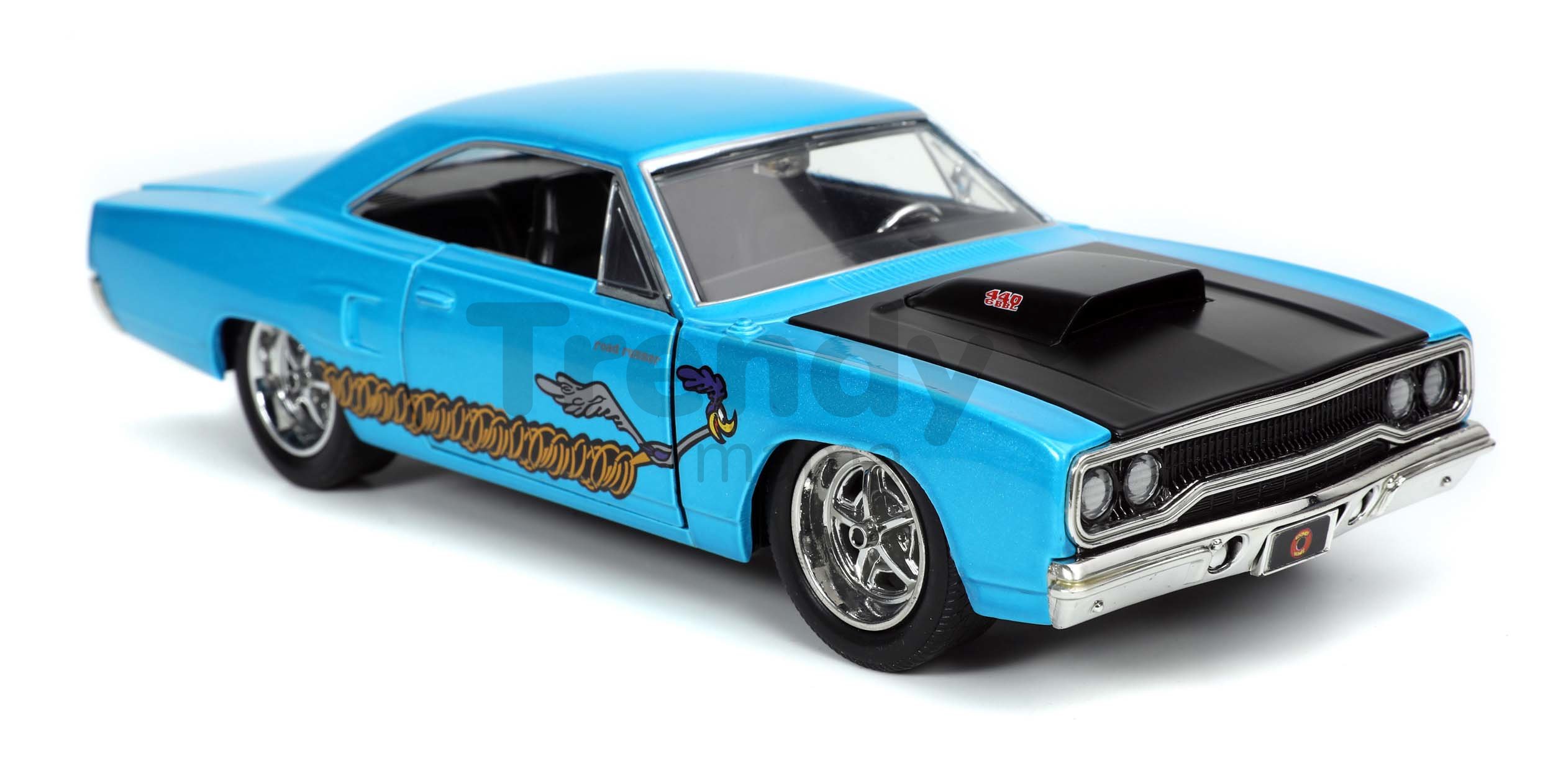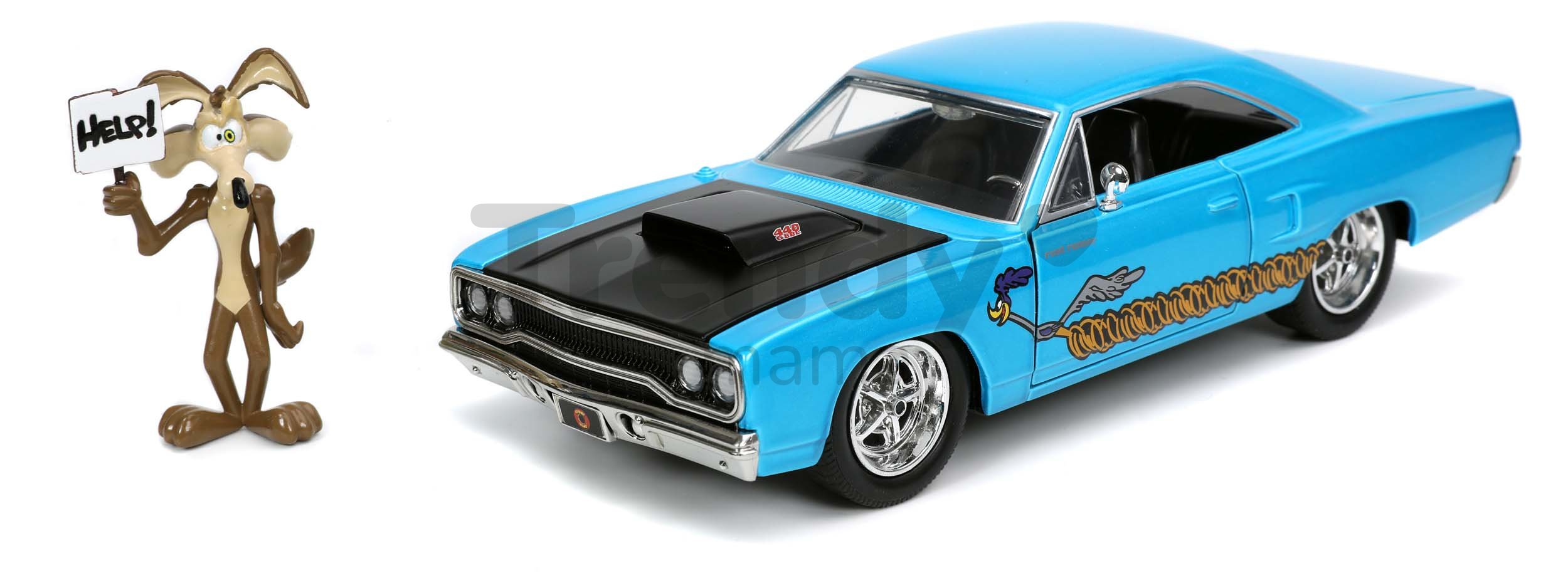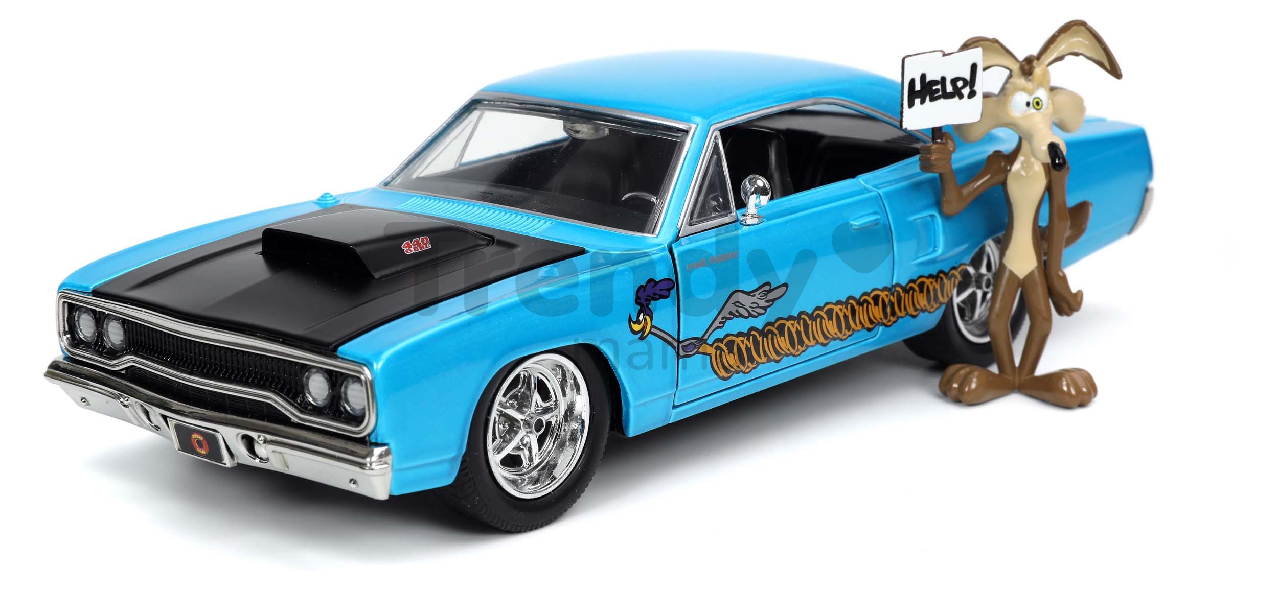 Autíčko Plymouth 1970 s motívom animovanej televíznej série Looney Tunes Road Runner predstavuje nádherný darček pre chlapcov a dievčatá od 8 rokov. Model kovového autíčka s dĺžkou 22 cm očarí malých aj veľkých zberateľov, v balení sa nachádza aj kovová figúrka Wile E. Coyote. Štýlové autíčko v modrom vyhotovení je vybavené otvárateľnými dverami, kapotou a kufrom. Precízne vypracované detaily na autíčku a figúrka hrdinu prinesú deťom nezabudnuteľné zážitky pri každodennej hre.