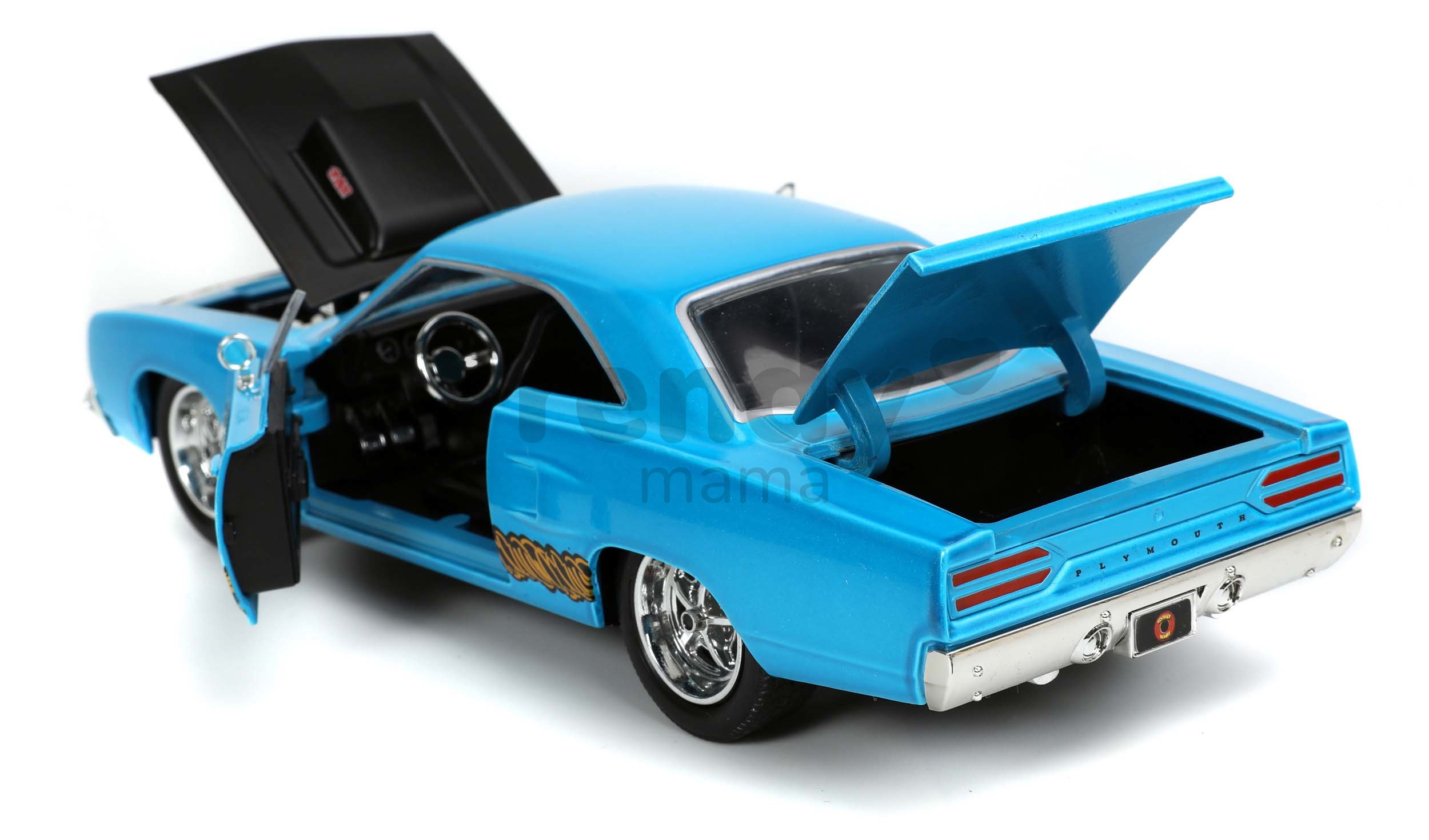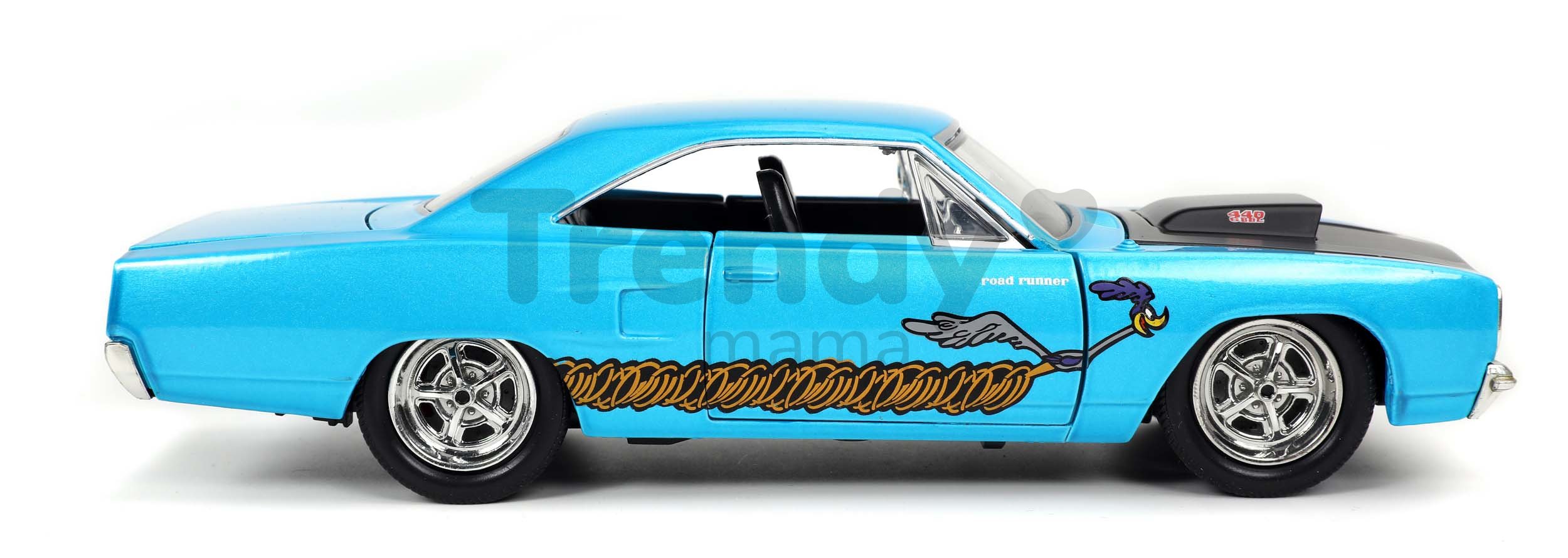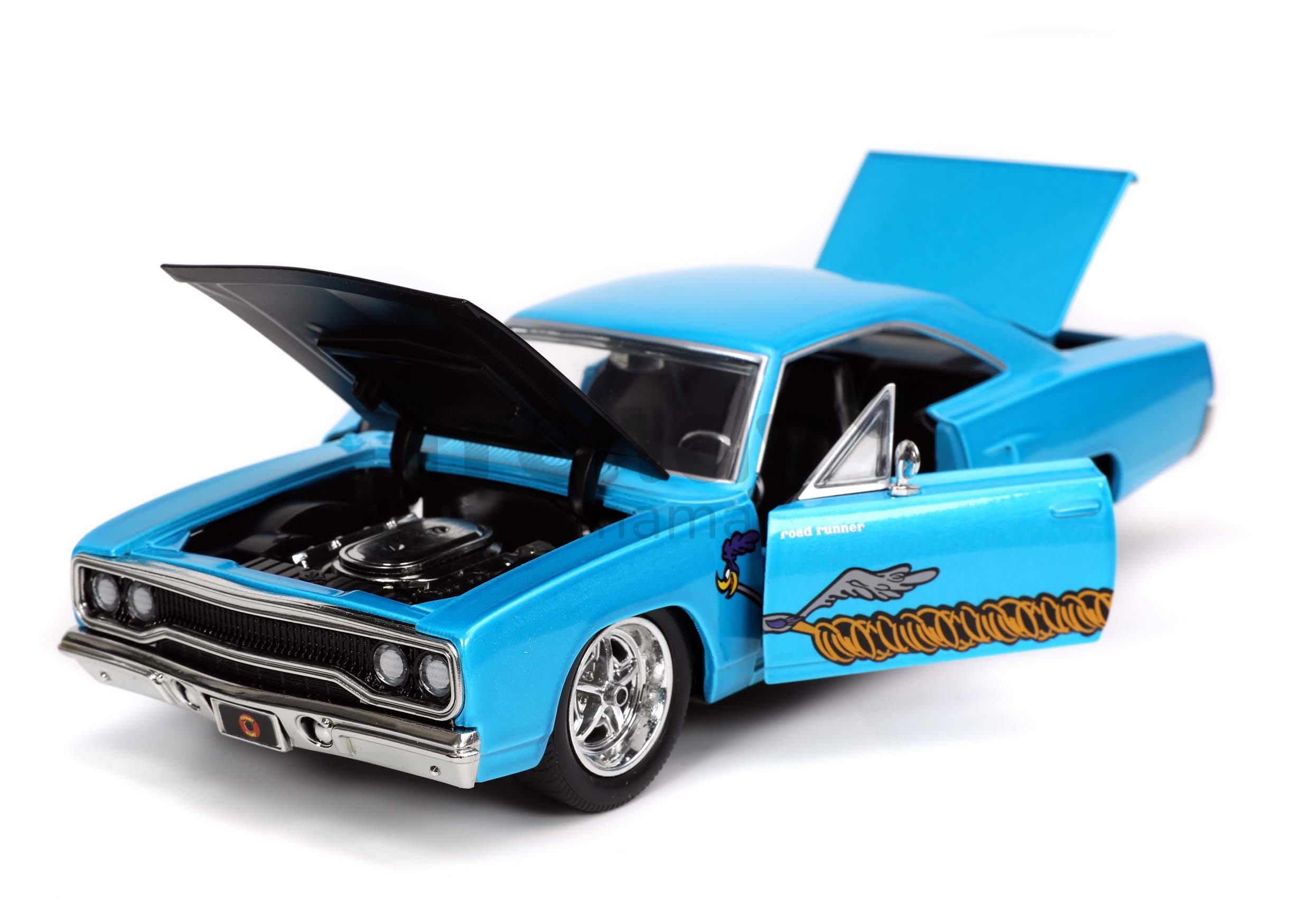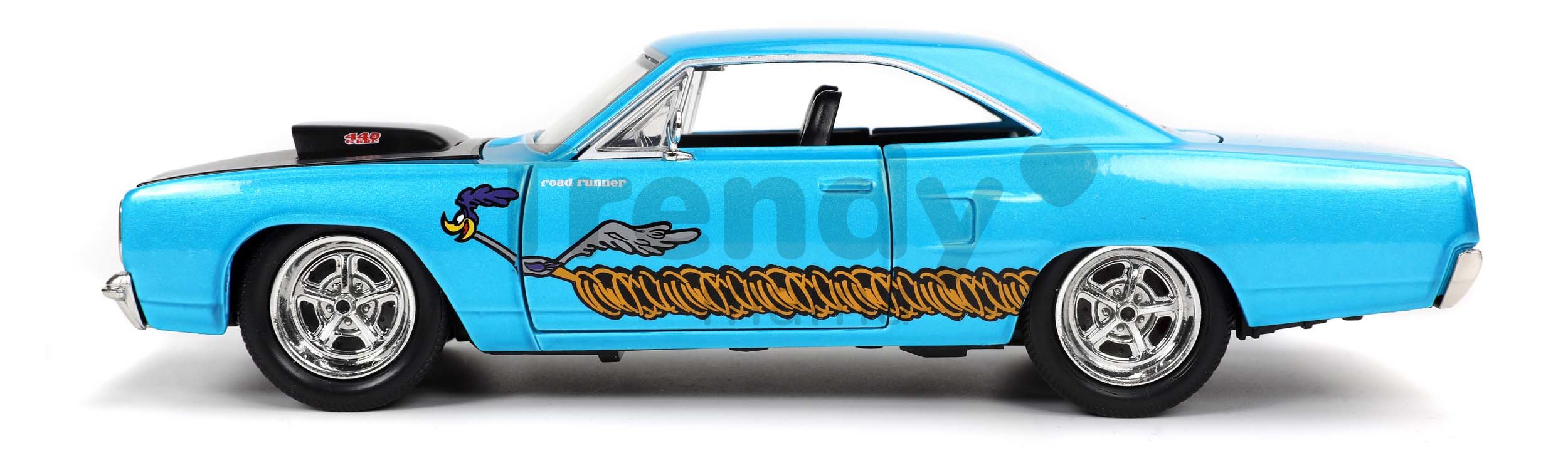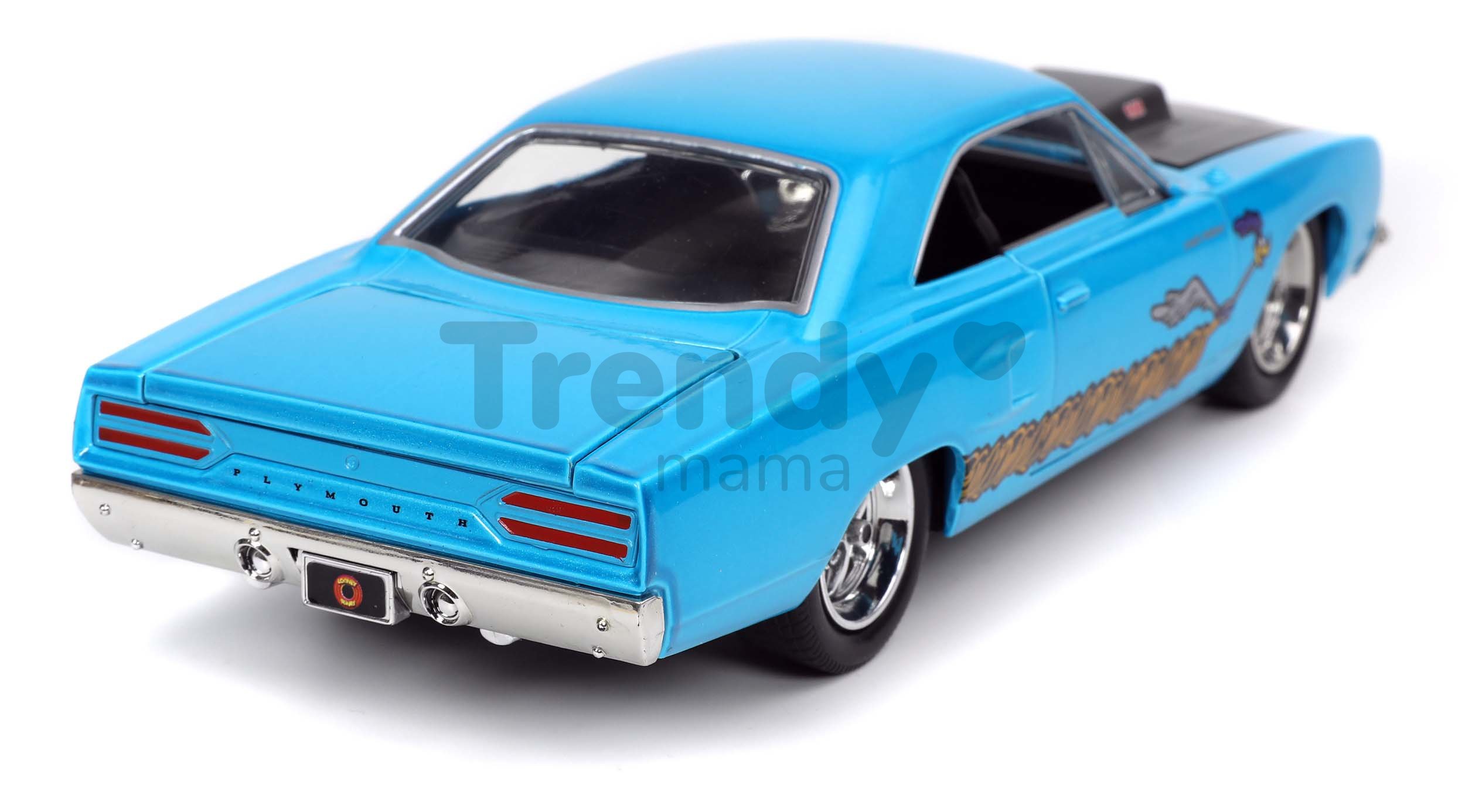 Autíčko Plymouth 1970 s motívom animovanej televíznej série Looney Tunes Road Runner predstavuje nádherný darček pre chlapcov a dievčatá od 8 rokov. Model kovového autíčka s dĺžkou 22 cm očarí malých aj veľkých zberateľov, v balení sa nachádza aj kovová figúrka Wile E. Coyote. Štýlové autíčko v modrom vyhotovení je vybavené otvárateľnými dverami, kapotou a kufrom. Precízne vypracované detaily na autíčku a figúrka hrdinu prinesú deťom nezabudnuteľné zážitky pri každodennej hre.
