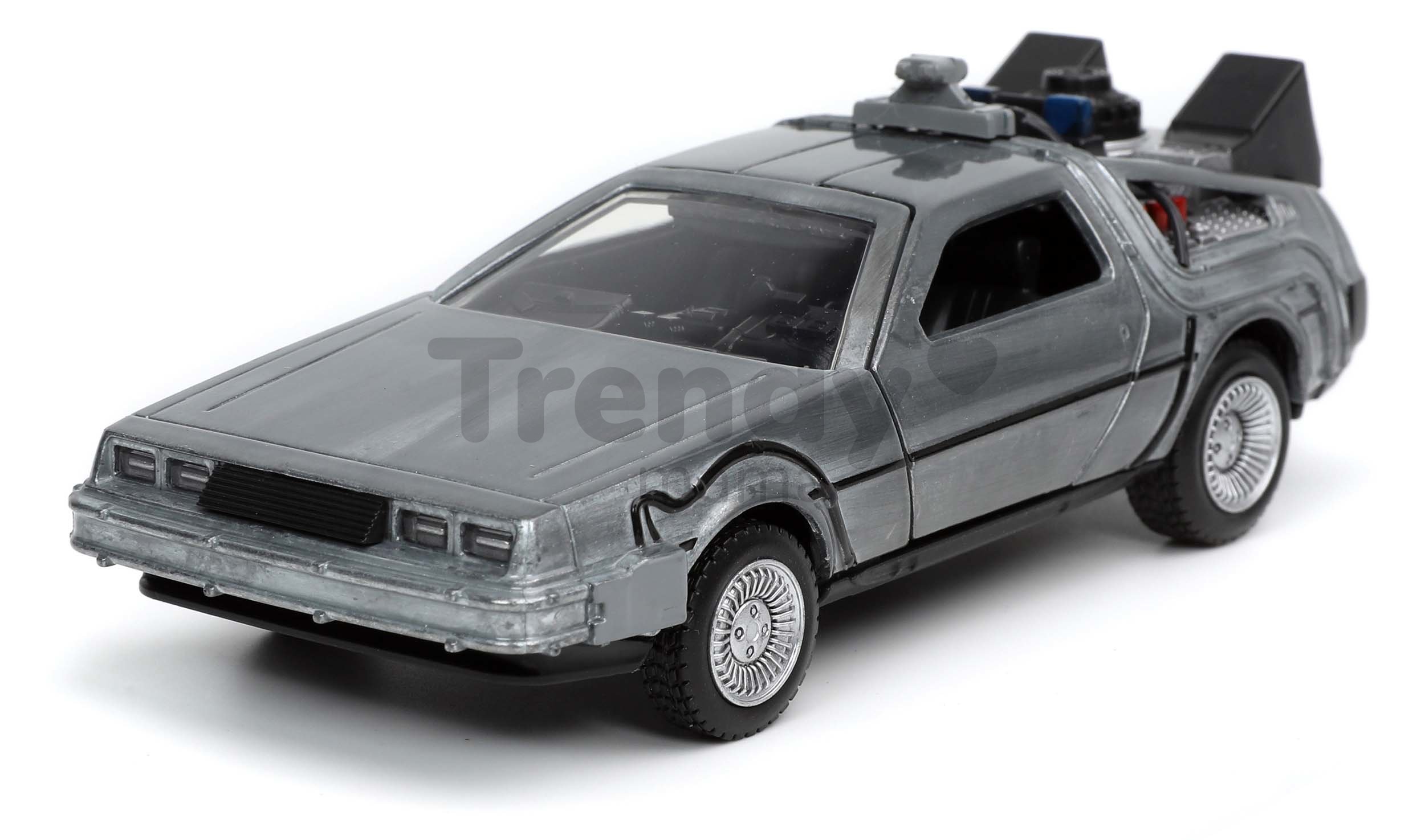 Autíčko Stroj času s motívom filmu Návrat do budúcnosti 1 predstavuje originálny darček pre zberateľov autíčok a deti od 8 rokov. Realistický model kovového autíčka s dĺžkou 12,5 cm zaujme najmä chlapcov. Verná replika autíčka v striebornom vyhotovení je vybavená otvárateľnými dverami a priehľadnými čelným sklom. Zberateľské autíčko sa pýši starostlivo vypracovanými detailmi, takže poteší fanúšikov tohto dobrodružného filmu o cestovaní v čase.