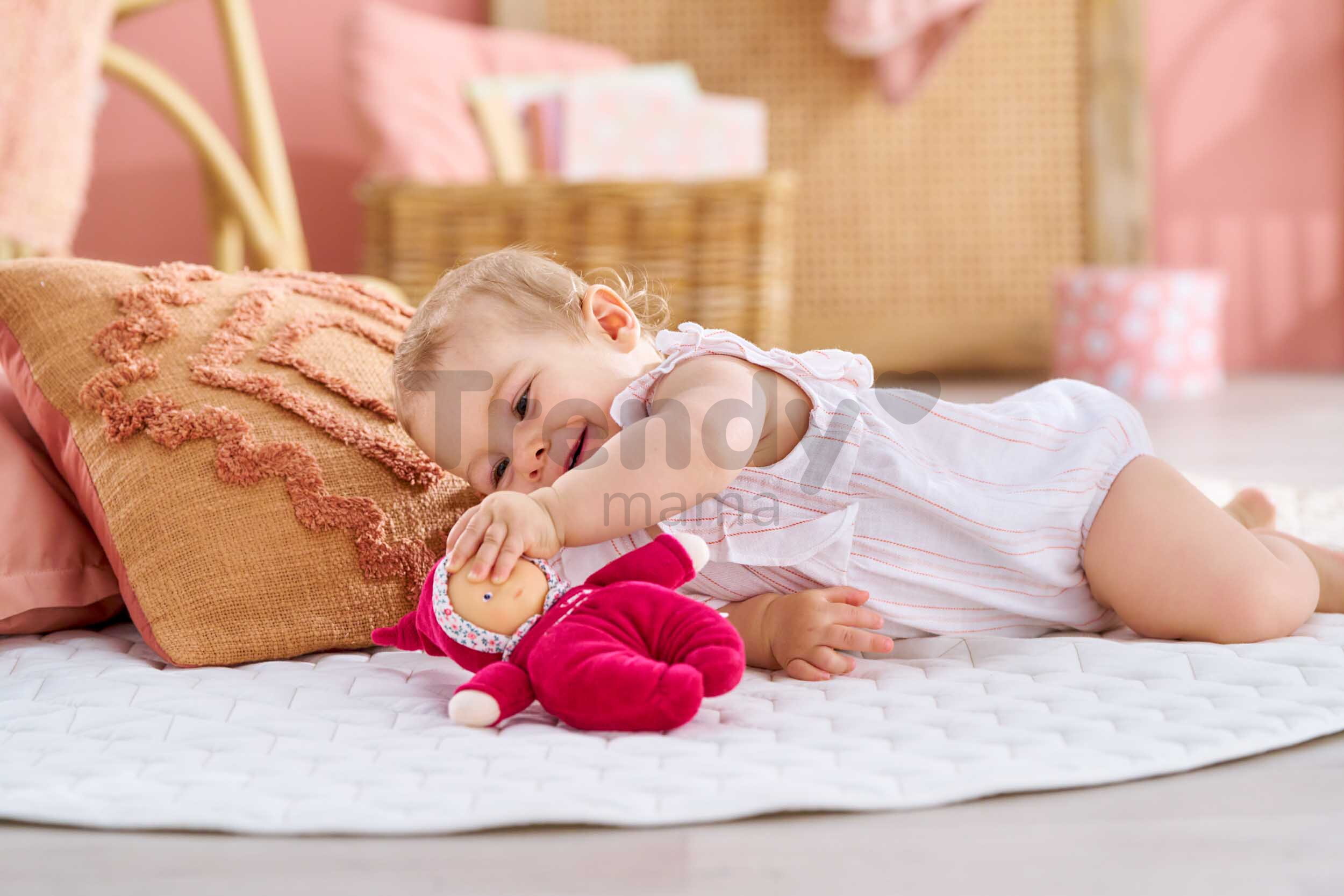Bábika Babidoux Pink Grenadine vo svojom brušku ukrýva jemnú hrkálku, ktorá na deti pôsobí upokojujúco a zároveň pozitívne vplýva na rozvoj sluchu. Bábika oblečená v rozkošnom tmavoružovom pyžamku s kvetinovými detailmi sa k vášmu dieťatku pritúli a upokojí ho aj vďaka príjemnej vanilkovej vôni.