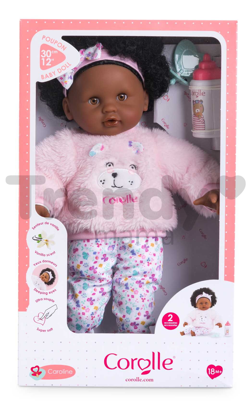 Bábika Caroline od Corolle má jedinečné asymetrické črty tváre, vďaka ktorým pôsobí ľudsky a sympaticky. Prenikavé hnedé očká vyzerajú ako živé, takže hra s bábikou bude deťom pripomínať starostlivosť o skutočné bábätko. Každú hru s touto bábikou Corolle navyše umocnia aj žmurkajúce oči, ktoré sa zatvoria vždy, keď dieťatko uloží bábiku do postieľky. Vaše dieťatko si vďaka prvotriednym materiálom, perfektnému prevedeniu a láskavému výrazu vytvoria s touto bábikou pevné puto, ktoré pretrvá.