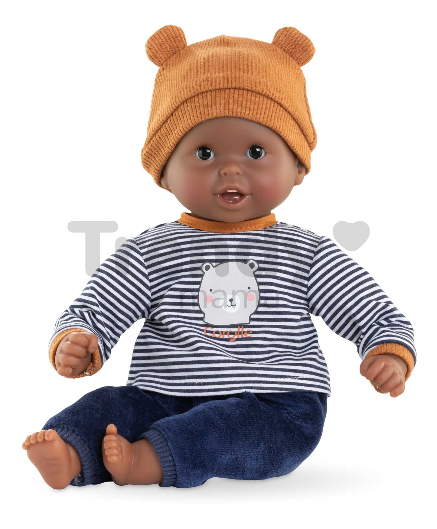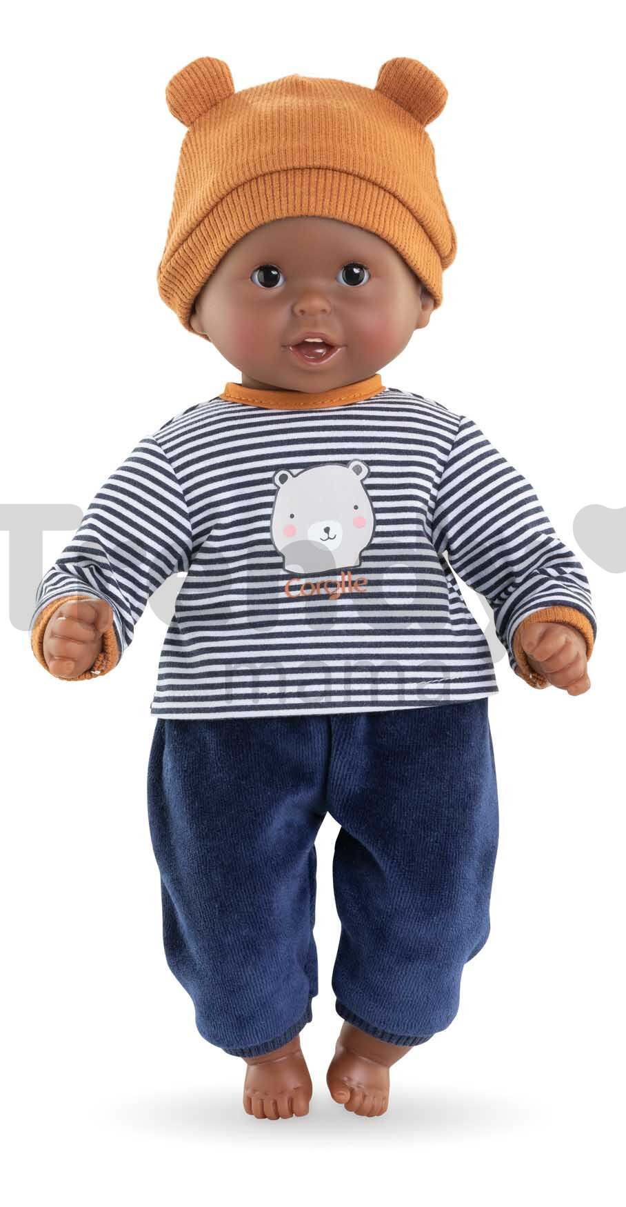 Originálna bábika Bébé Calin Marius z dielne francúzskej značky Corolle je tá najkrajšia bábika pod slnkom. Tmavooká bábika pre deti od 18 mesiacov oblečená v štýlovom outfite je pripravená na starostlivosť, ktorú jej vaše dieťatko poskytne. Telíčko bábiky je príjemné na dotyk aj pritúlenie vďaka mäkkým fazuľkám, ktoré bábike umožňujú samostatne sedieť či ležať.