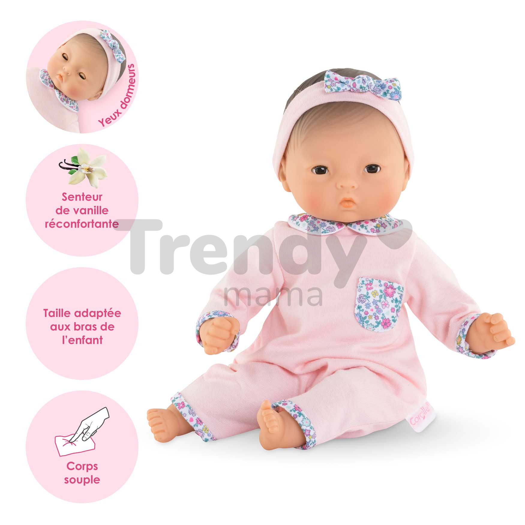 Prekrásna bábika Bébé Calin Mila z dielne francúzskej značky Corolle je tá najkrajšia bábika pod slnkom, ktorá vyzerá takmer ako skutočné bábätko. Tmavooká bábika pre deti od 18 mesiacov je oblečená v roztomilom svetloružovom pyžamku s kvetinovými detailmi, ktoré je dokonale zladené s čelenkou. Rozkošná bábika Mila je pripravená na starostlivosť, ktorú jej vaše dieťatko poskytne. Telíčko bábiky je príjemné na dotyk aj pritúlenie vďaka mäkkým fazuľkám, ktoré bábike umožňujú samostatne sedieť či ležať.