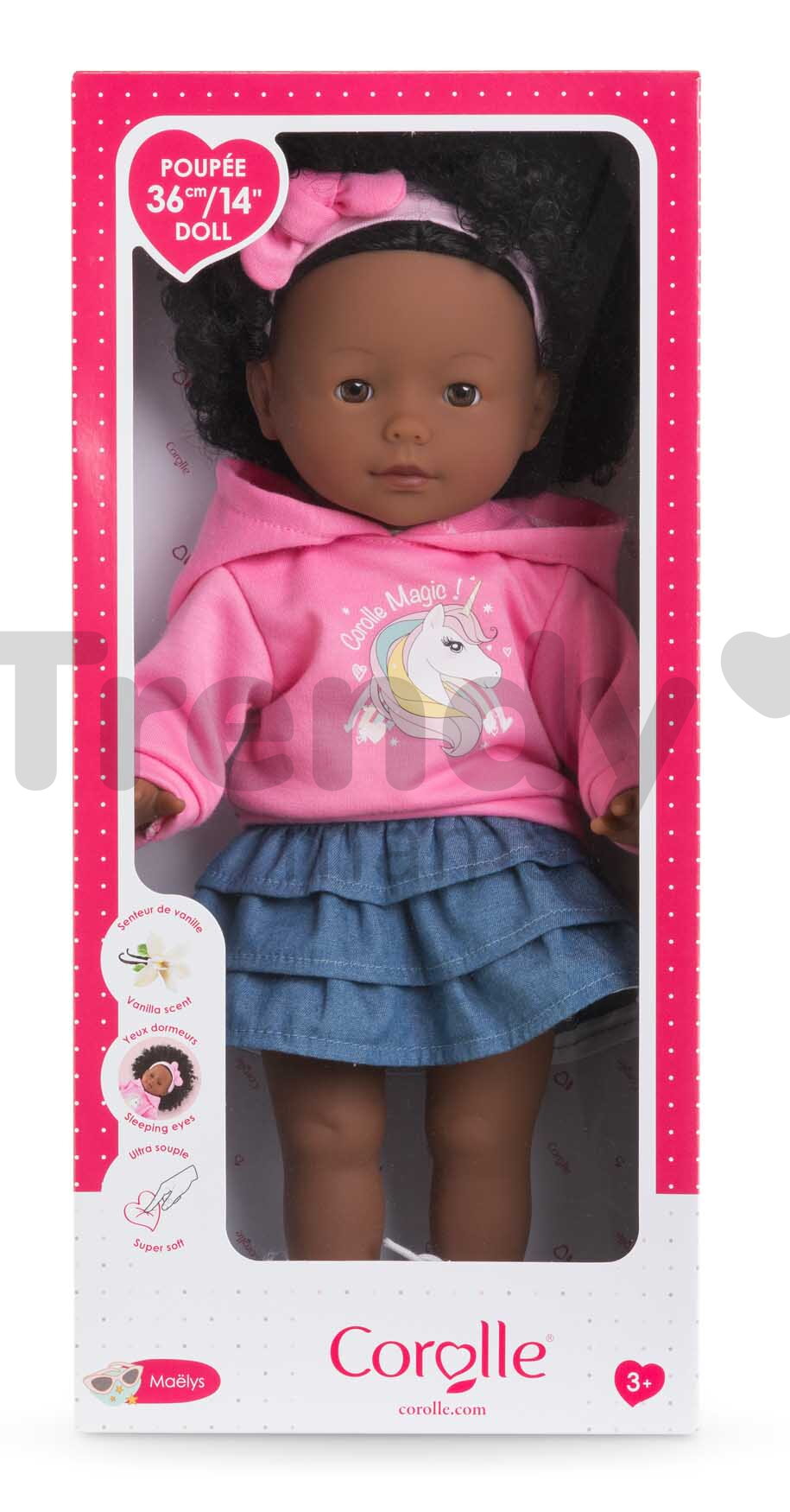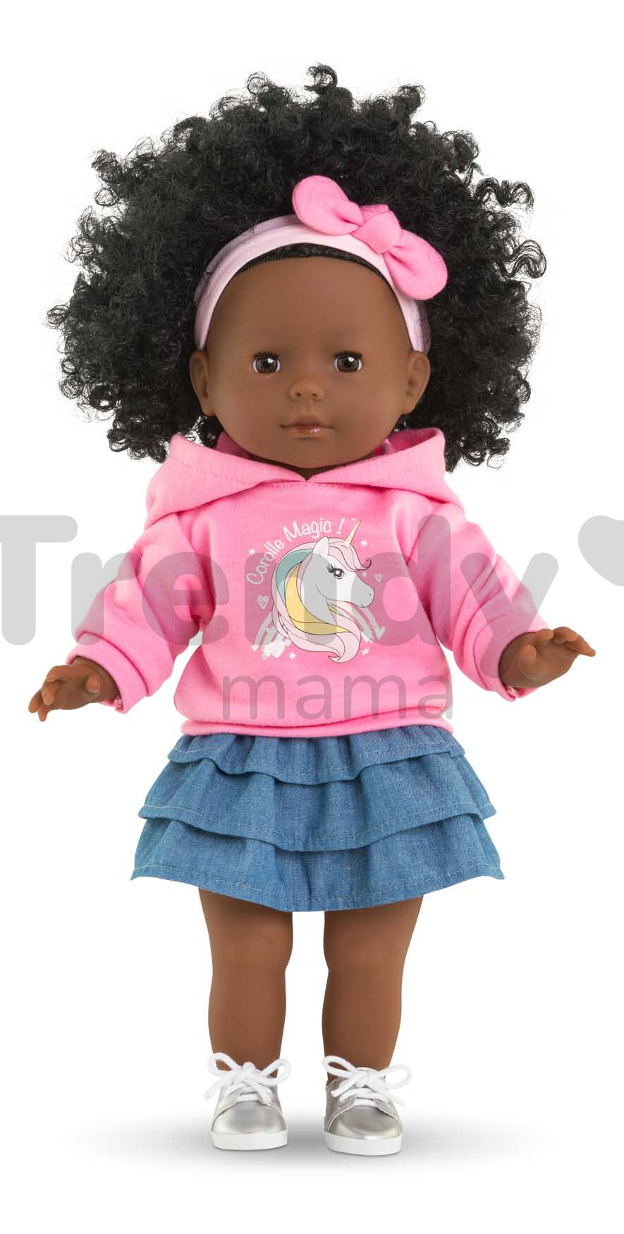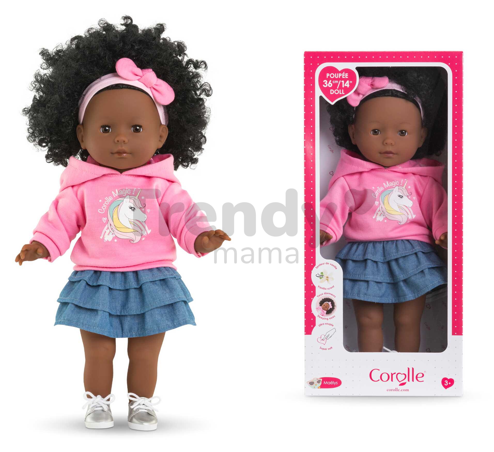 Bábika s nádherným menom Maëlys je oblečená v džínsovej sukničke a ružovej mikine s kapucňou, no deti ju môžu obliekať do ďalších štýlových outfitov. Vďaka množstvu doplnkov a oblečenia bude starostlivosť o bábiku Ma Corolle zaujímavejšia a plná nových podnetov. Za zmienku určite stoja aj čierne kučeravé vlásky bábiky a každú hru s touto bábikou umocní aj asymetrická tvárička a hnedé žmurkajúce očká, ktoré sa zatvoria vždy, keď si bábika ľahne na chrbát.