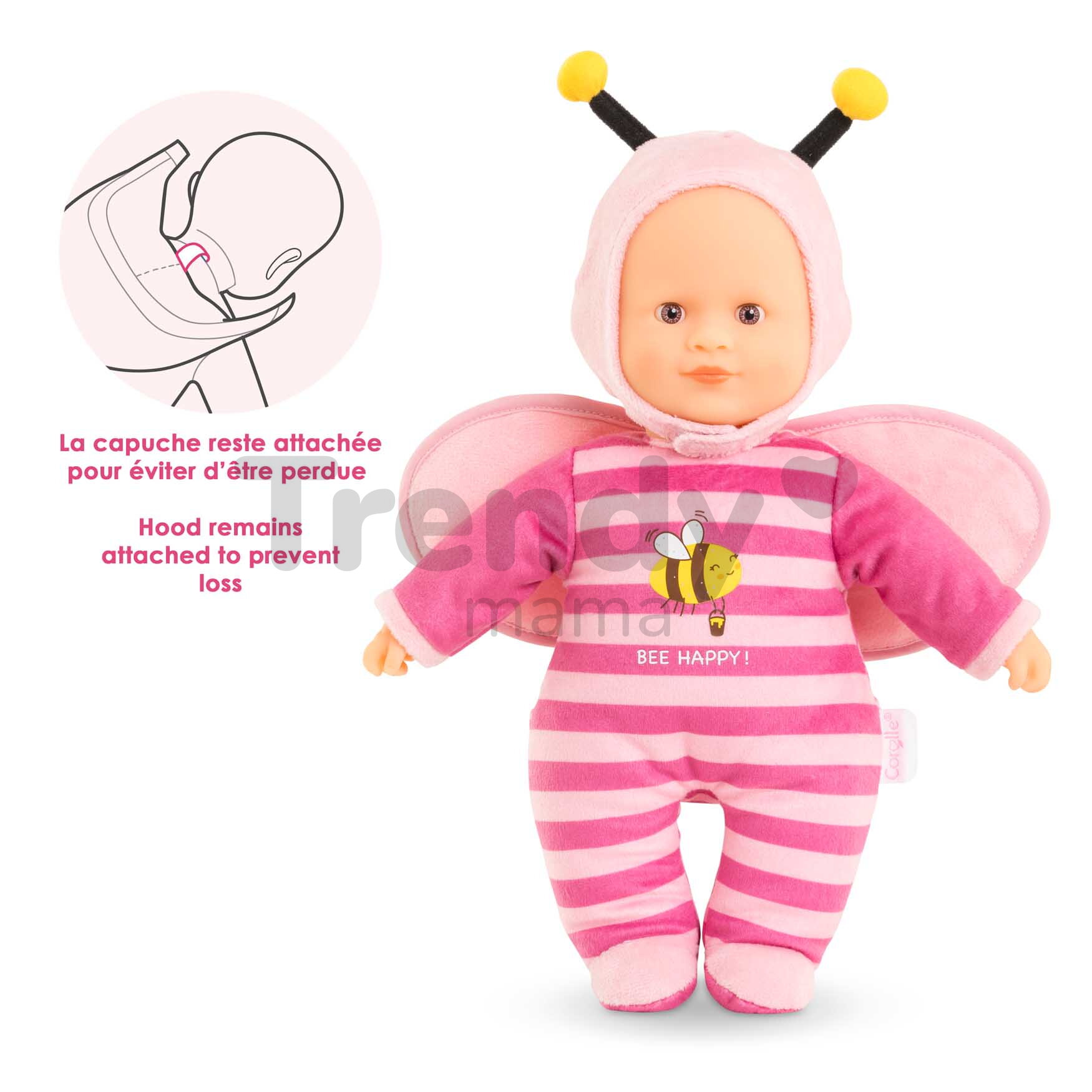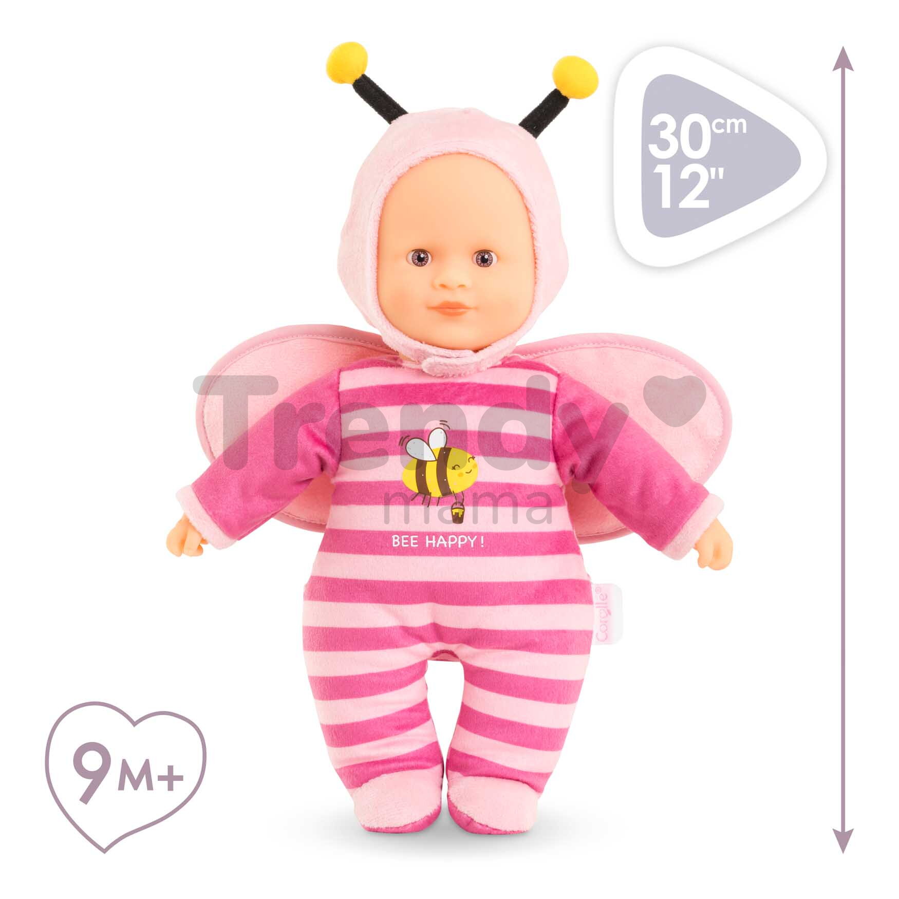 Krásna bábika v ružovom pyžamku s rozkošným detským dizajnom má čiapku s tykadielkami a krídelká, vďaka čomu vyzerá ako včielka. Vaše deti si získa aj vďaka vanilkovej vôni, ktorú nestratí ani po vypratí. Po bábike Corolle budú deti siahať znova a znova aj vďaka asymetrickej tváričke, ktorá pôsobí ľudsky a sympaticky. Jemné pršteky detí už pri prvom dotyku s bábikou objavia rôzne materiály, ktoré pôsobia prirodzene a vďaka mäkkému telíčku si už od útleho veku precvičujú správny úchop a spoznávajú rôzne povrchy.