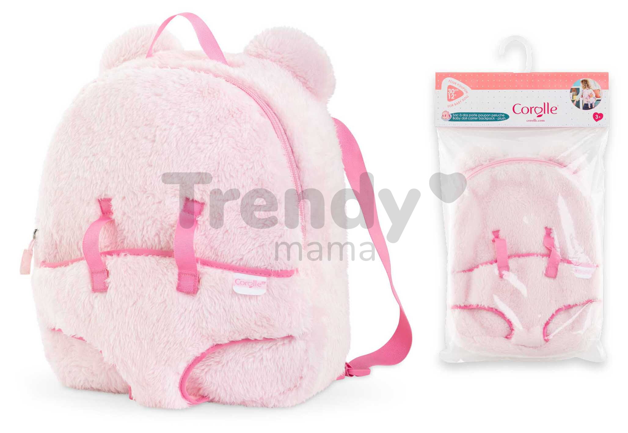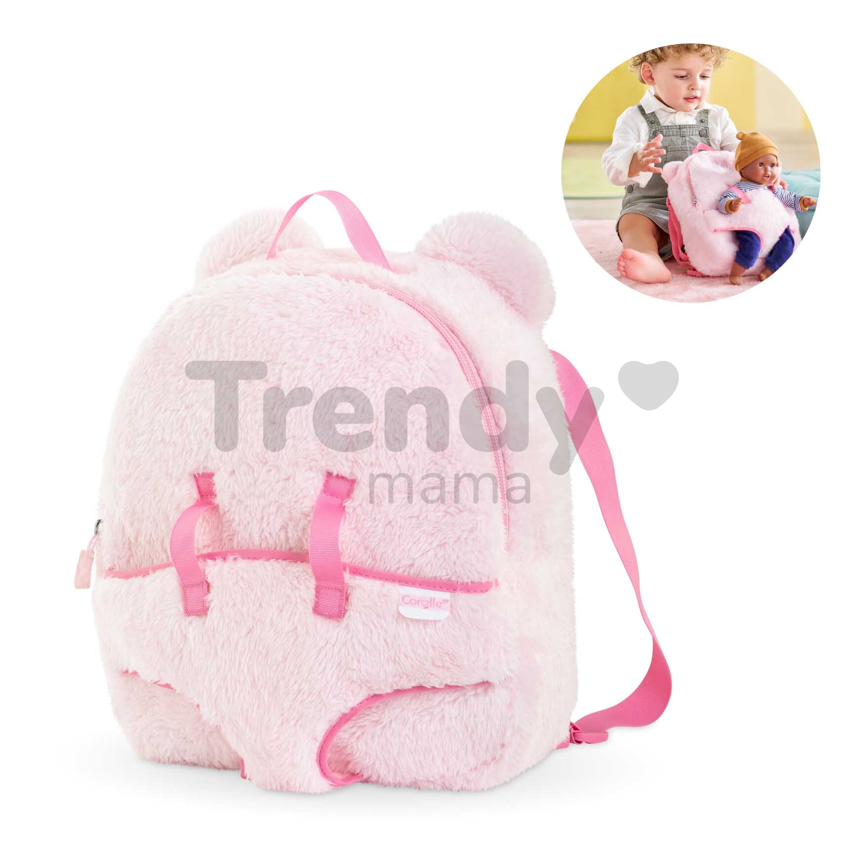 Výlety s bábikou budú vďaka Corolle nezabudnuteľné. Batoh s klokankou Pink Plush Baby Doll Carrier Backpack od Corolle predstavuje jedinečný módny doplnok, vďaka ktorému sa vaša dcérka dokonale zladí s milovanou bábikou Corolle, ktorú bude mať navyše vždy pri sebe. Prekrásny ružový batoh s rozmermi 26*23*8 cm je premyslený do toho najmenšieho detailu, o čom svedčí aj klokanka na nosenie bábiky s veľkosťou 30 cm. Batoh v jemnej ružovej farbe deťom poskytuje dostatok úložného priestoru a nastaviteľné ramienka. Dievčatká si do batoha uložia všetky módne doplnky aj potreby na starostlivosť o bábiku, ktoré bábika Corolle potrebuje na každom výlete.