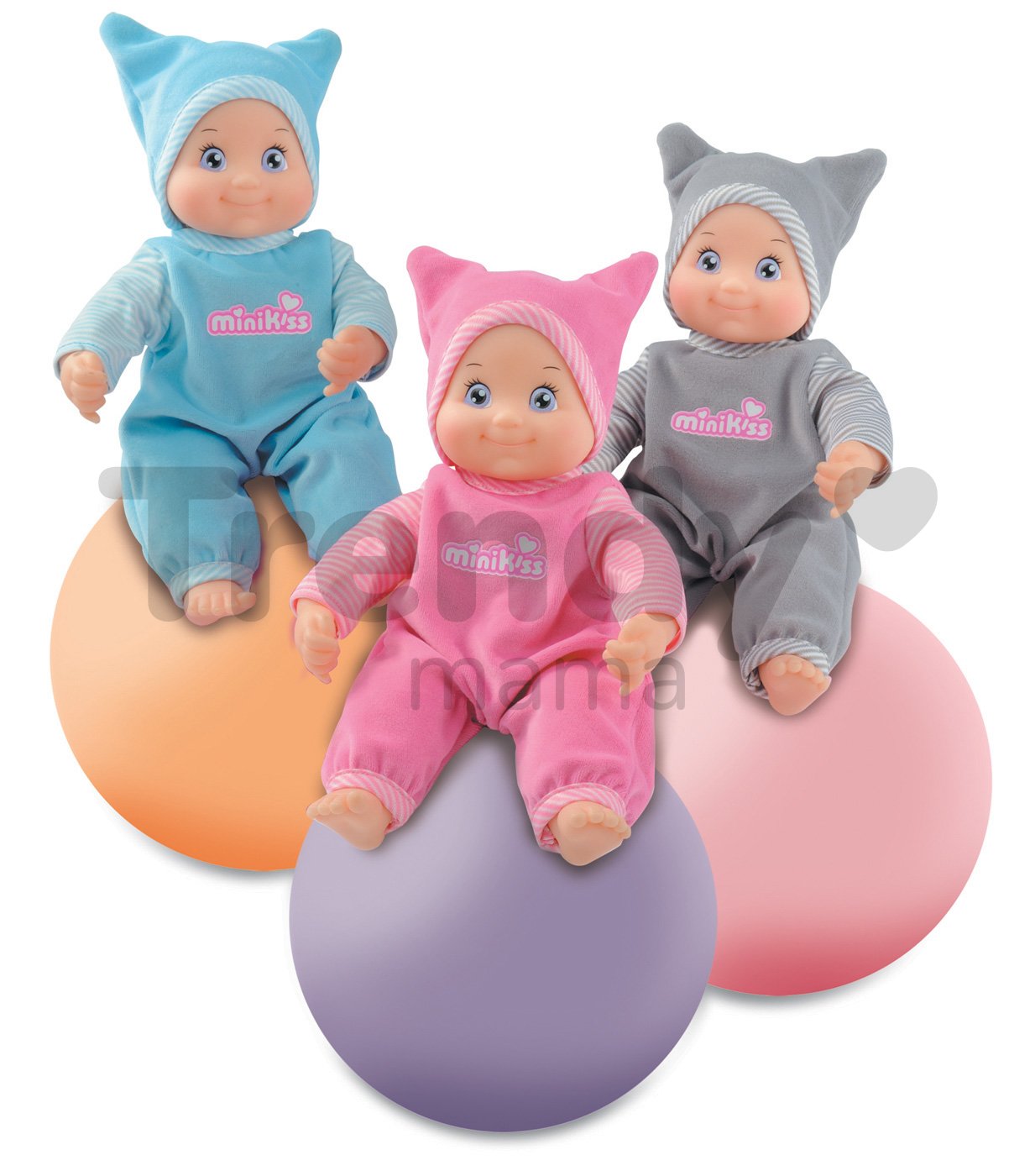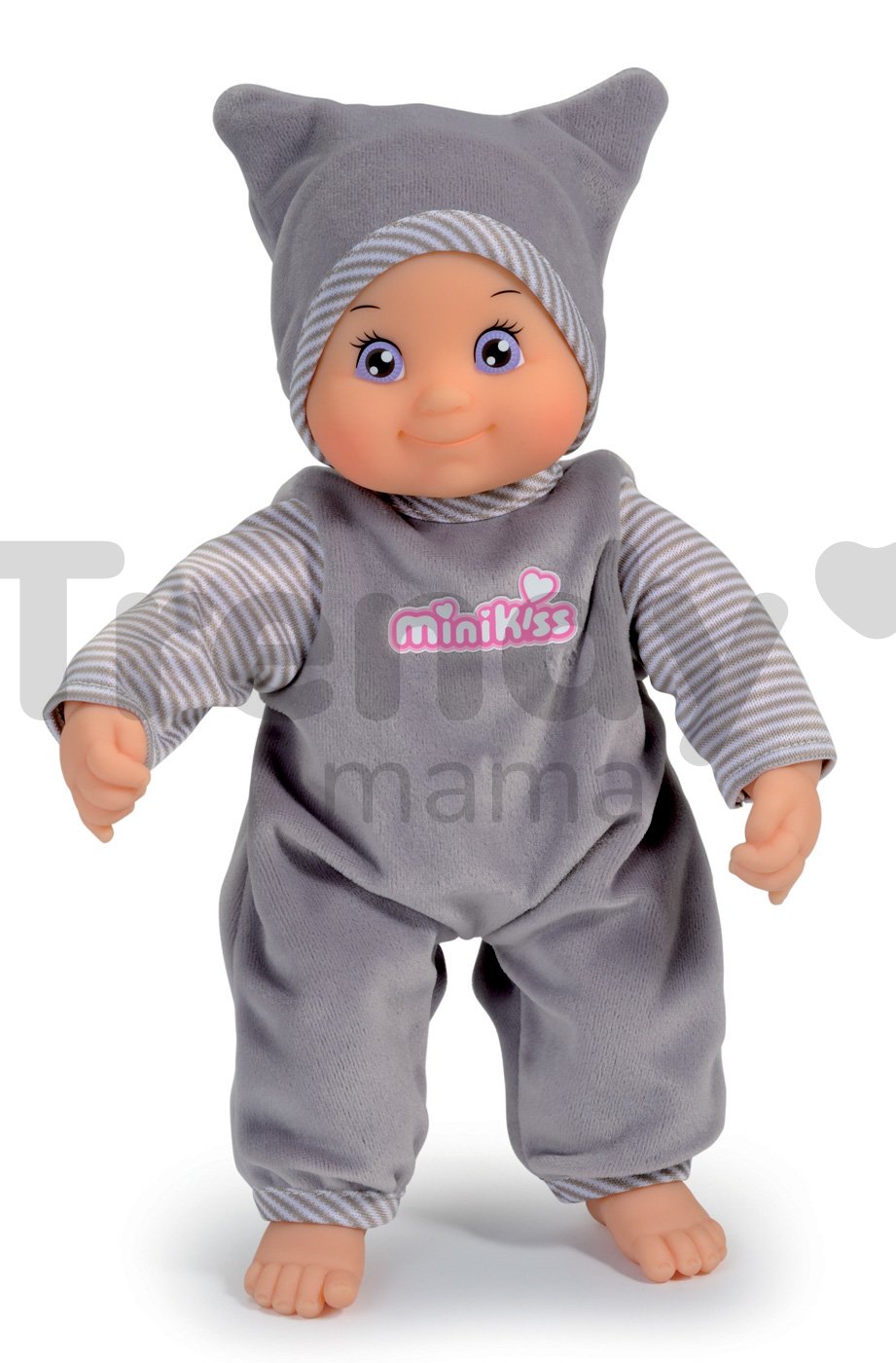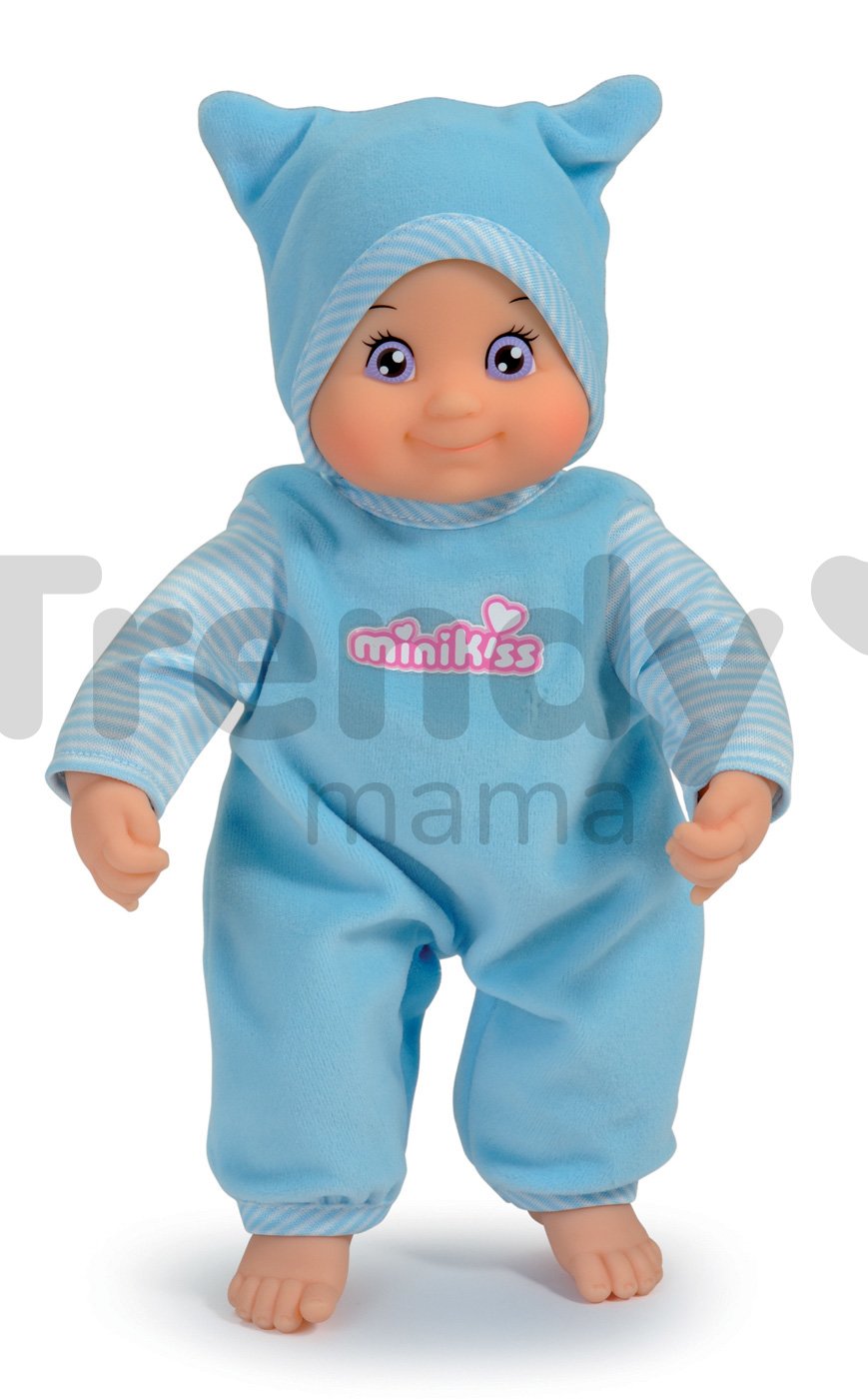 Detská bábika MiniKiss je skvelou hračkou pre každé dieťa vhodné už od 12 mesiacov. Má výšku 27 cm a vydáva zvuky bozku po stlačení bruška. Detská bábika MiniKiss od francúzskeho výrobcu hračiek Smoby má krásnu milú tváričku a je oblečená v modrom/sivom alebo ružovom oblečení s nápisom MiniKiss. Záleží len na vás, ktorú z nich si vyberiete. K bábike pre deti sa dá dokúpiť rôzne oblečenie, a tak ju dieťa môže prezliekať. Funguje na 3 AA/LR44 batérie.