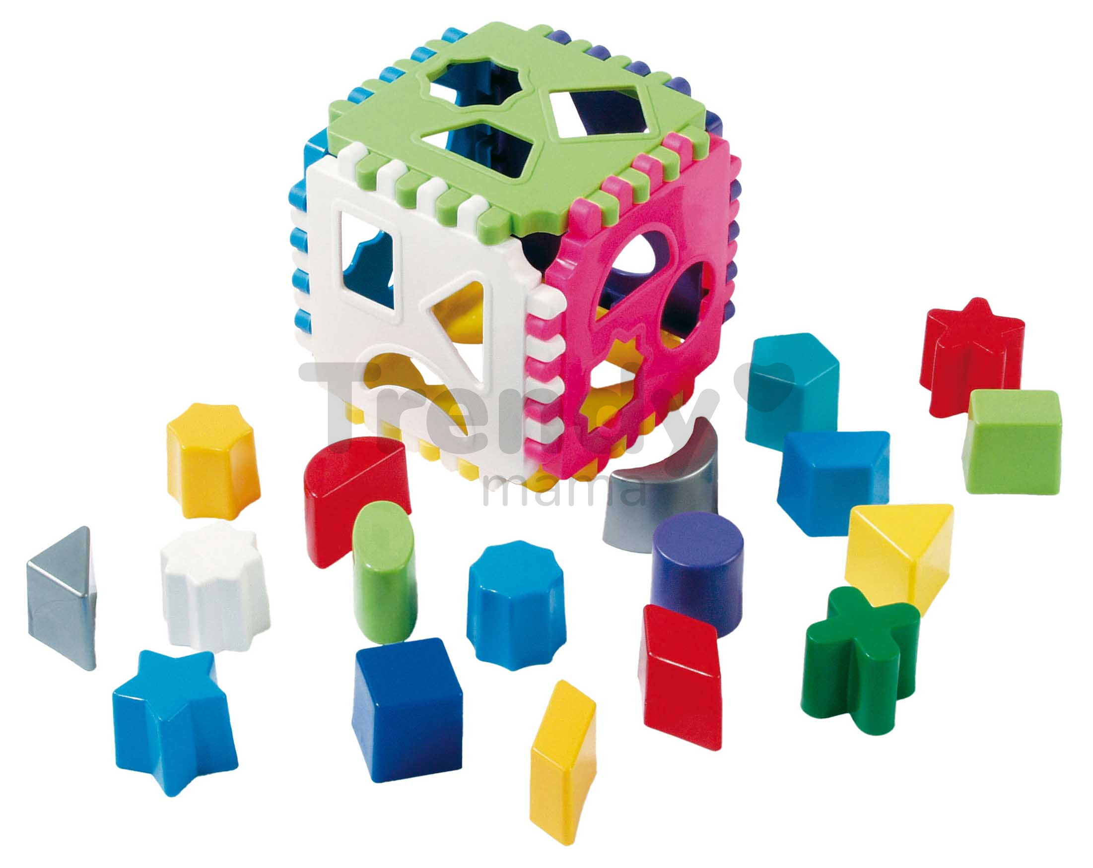 Skladačka pre detičky sa po zložení a naplnení kockami dá taktiež kotúľať a použiť ako hrkálka. Kocky pre deti majú rôzne tvary a farby sú tam aj zvieratká, kvetinky a geometrické tvary. Rozmery detskej Čarovnej kocky sú 13*12*13 cm. Kocky a konštrukcia sú vyrobené z kvalitného plastového materiálu, ktorý je jemný a príjemný pre krehké detské rúčky. Dohány je európsky výrobca zdravotne nezávadných plastových hračiek, ktoré spĺňajú prísne európske štandardy.