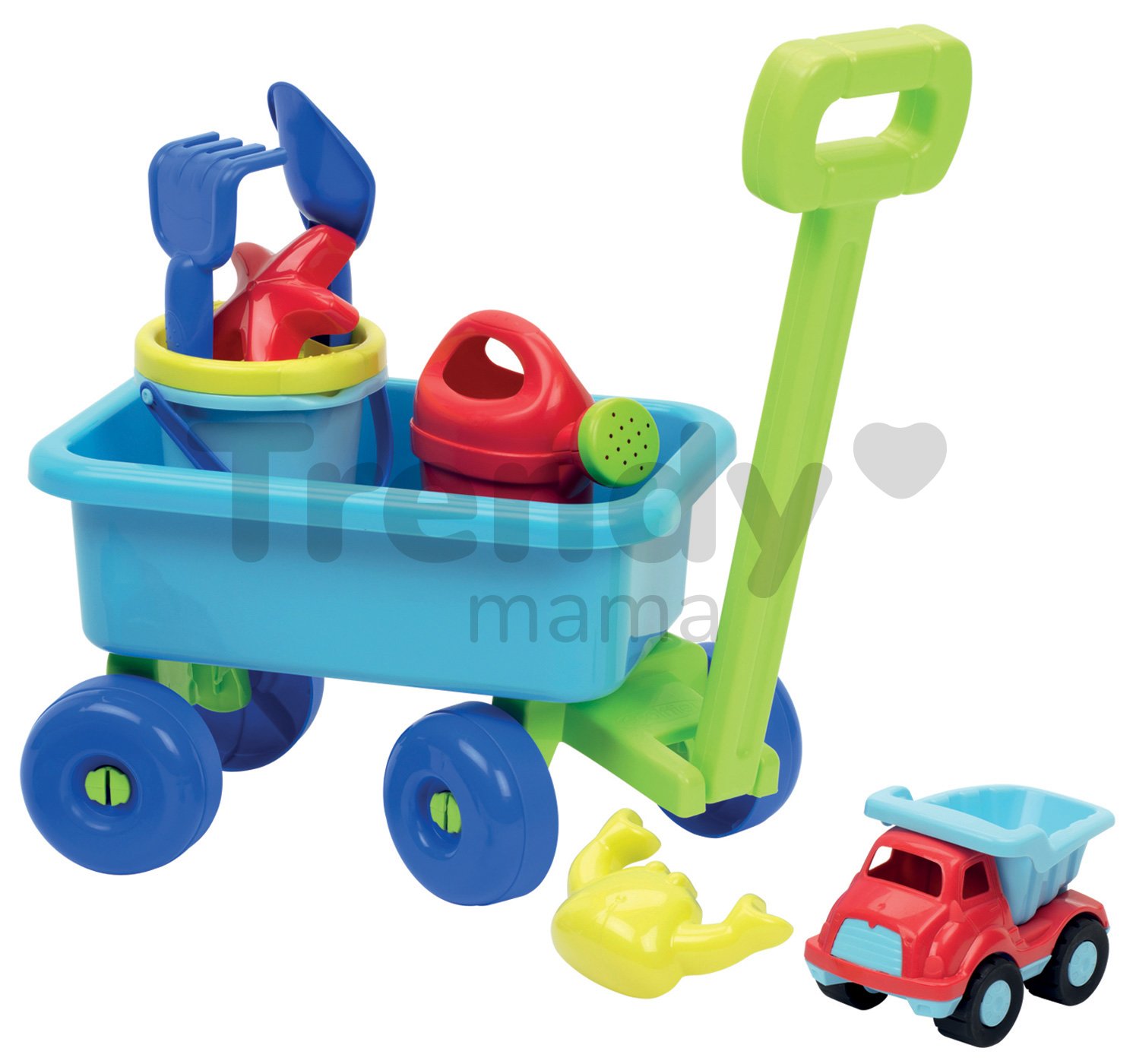 Vozík pre deti Écoiffier je nádherný vozík na hry v záhrade vhodný pre najmenšie deti od 18 mesiacov. Súčasťou balenia je aj plastový set pre deti do piesku. Detský set do piesku obsahuje vedierko, sitko, krhlu, hrable, lopatku a formičku. Okrem vedro setu sa na vozíku nachádza aj pestrofarebné autíčko vhodné na veselé hry v piesku, v záhrade alebo hocikde inde. Vozík pre deti je vhodný od 18 mesiacov. Je vyrobený z kvalitného plastového materiálu. Vo vozíku si deti môžu prevážať svoje najobľúbenejšie hračky, stavebný materiál v podobe piesku alebo pomáhať rodičom v záhrade prenášaním kvietkov a iného náradia. Rozmery vozíka pre deti sú 70*20*21 cm.