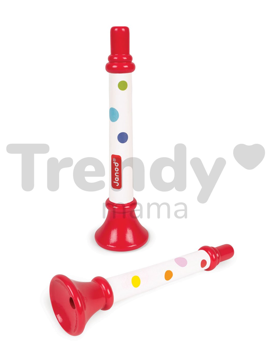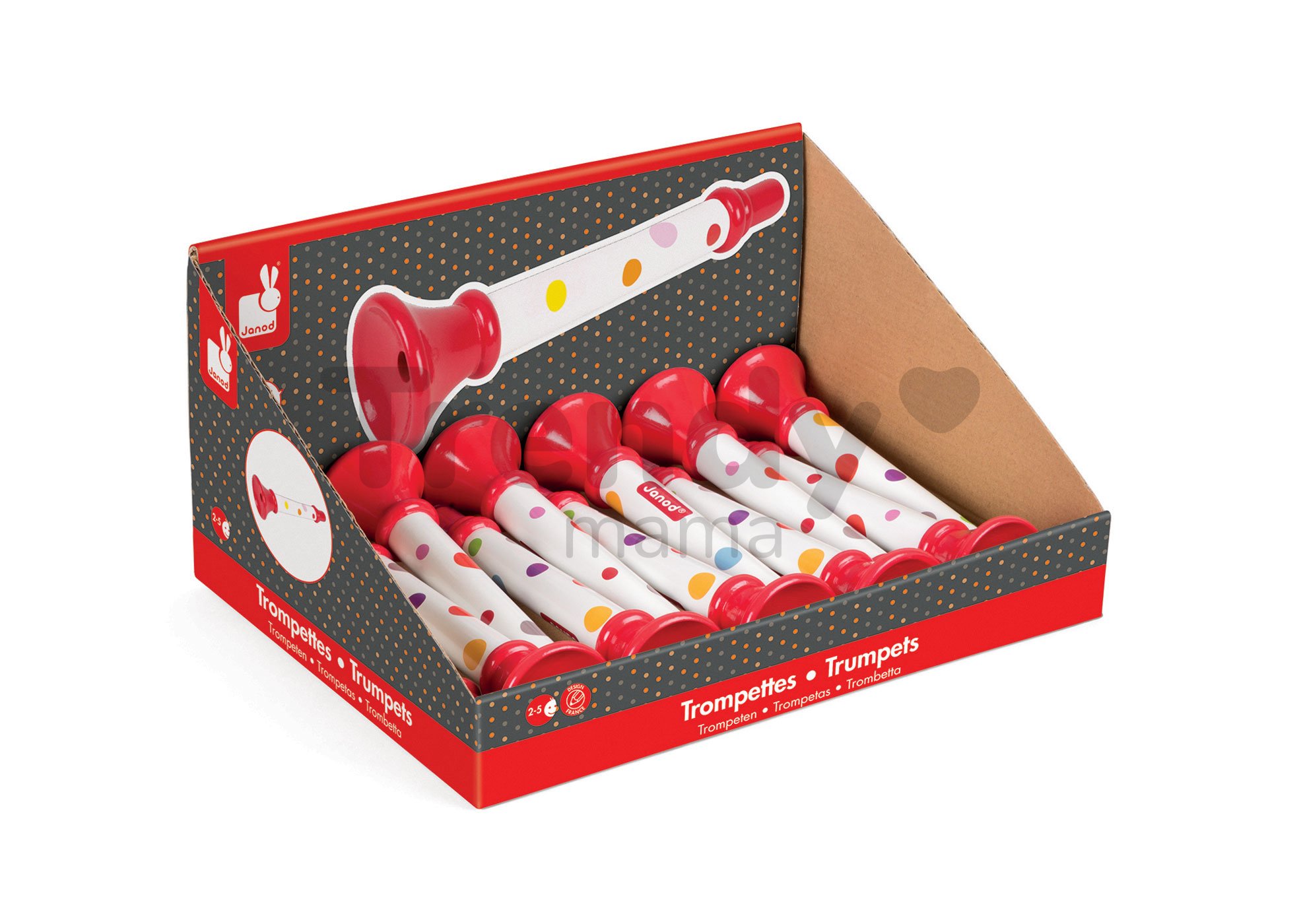 Janod drevená trúbka Confetti Trumpet je nádherný hudobný nástroj z dreva vhodný pre deti od 2 do 5 rokov. Dĺžka detskej trúbky je 18 cm, má krásnu bielu farbu s farebnými bodkami. Ak máte doma malého muzikanta či muzikantku, toto je pre nich ideálny darček. Hranie na trúbke je veľmi jednoduché a pritom tak zábavné. Posilňuje sa pri tom koordinácia oko-ruka, rozvíja sa hudobné cítenie a zmysel pre rytmus, ďalej fantázia, kreativita a tvorivosť. Detská trúbka z dreva je zárukou veľkej zábavy pre všetky deti, nikdy neomrzí. Detský hudobný nástroj je nadčasová hračka, je vyrobený z kvalitného dreva a zdravotne neškodných a odolných farieb. Jedinečný dizajn, farebné prevedenie a realistické zvuky trúbky Janod vám zaručia, že mu neodolá žiadny malý hudobník alebo hudobníčka.