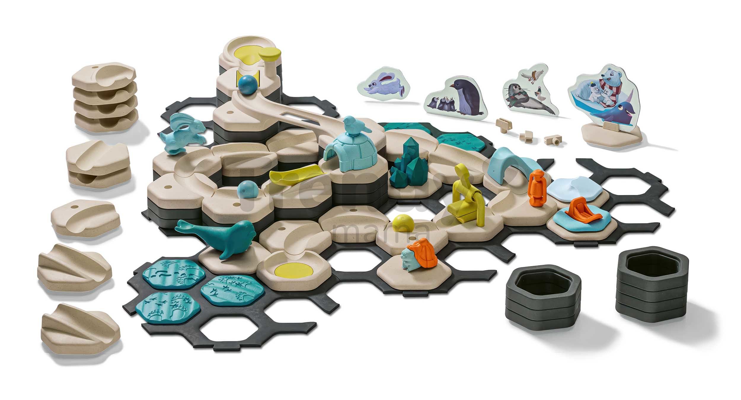 Guľôčková dráha Ľadový svet - Štartovacia sada Junior predstavuje skvelú prvú stavebnicu pre chlapcov a dievčatá už od 3 rokov. Guľôčková dráha Junior s motívom Ľadového sveta umožní deťom naplno využiť svoju fantáziu a predstavivosť pri stavbe rozmanitej dráhy. Stavebnica obsahuje 101 dielikov, pomocou ktorých deti navrhujú a budujú interaktívny dráhový systém. Pomocou guľôčok testujú priechodnosť dráhy a zapracujú do nej aj stavebné dieliky s figúrkami zvieratiek vyrobenými z kvalitného dreveného bioplastu. Súčasťou balenia je aj návod, vďaka ktorému deti rýchlo pochopia základné princípy stavania dráhy.