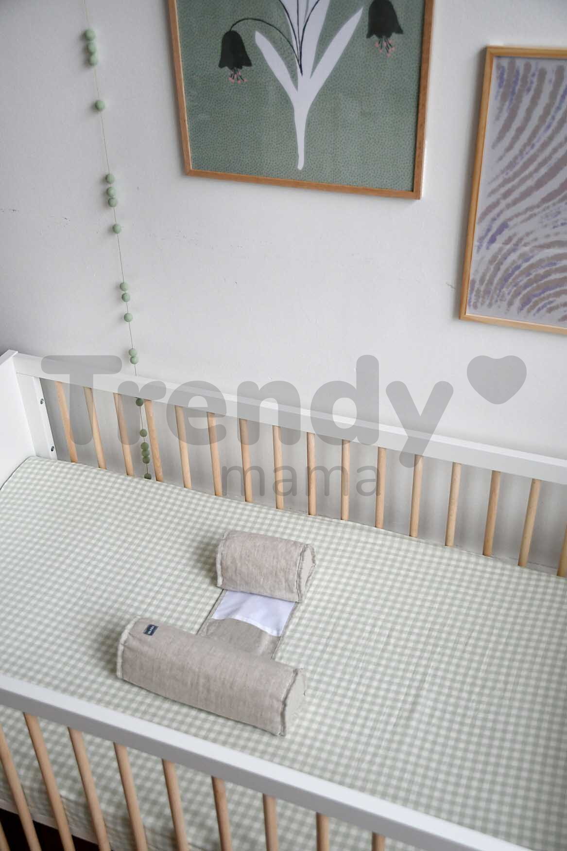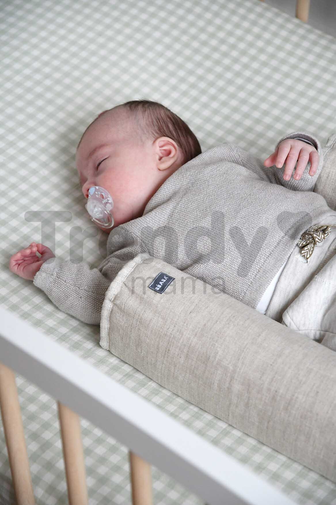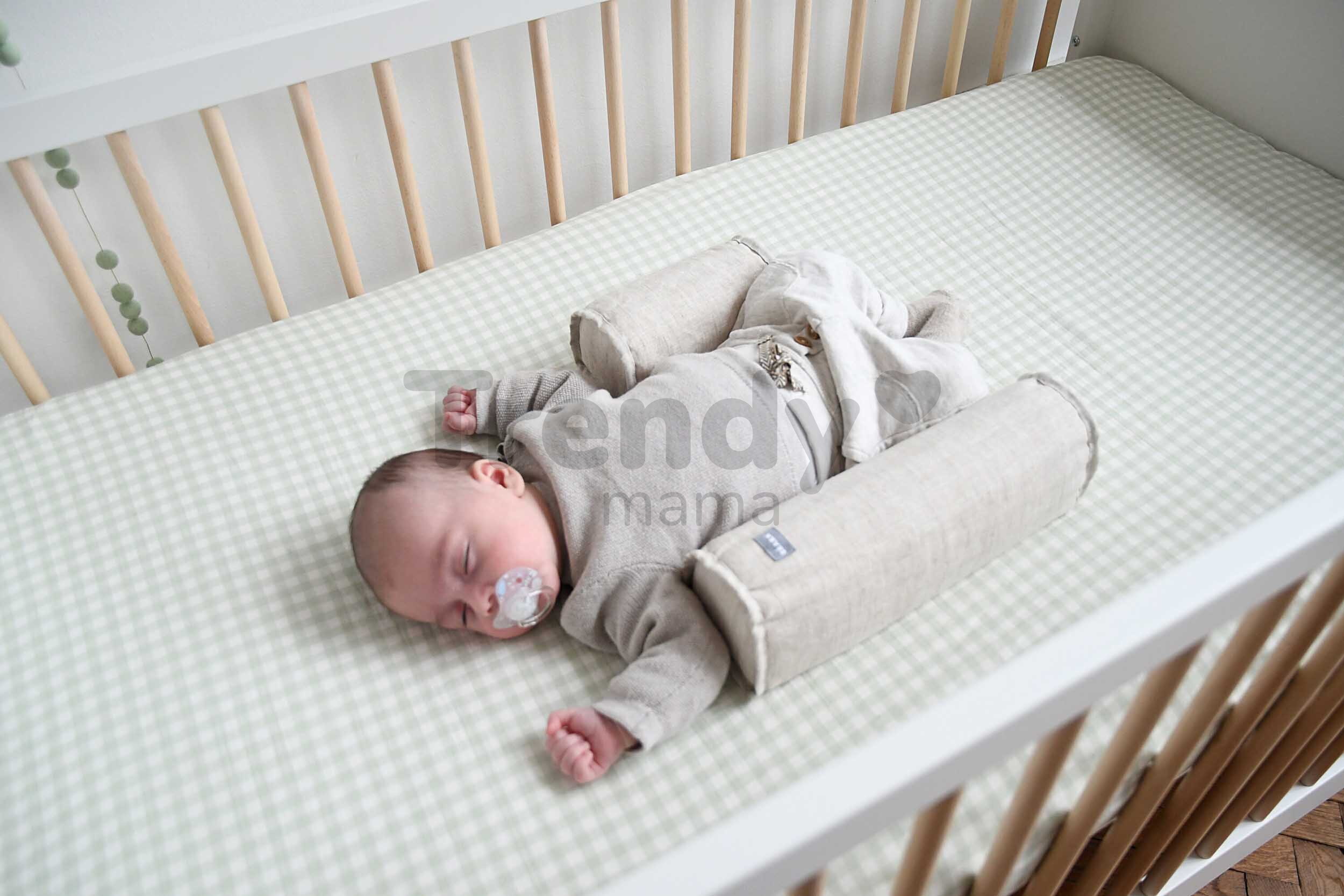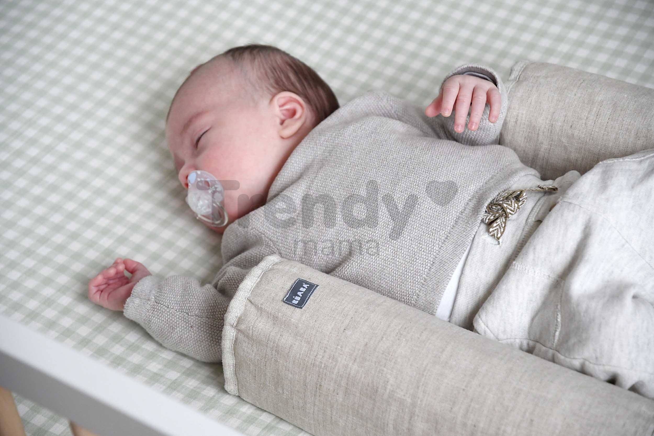 Hniezdo na spanie Bébécal™ pozostáva z dvoch vankúšikov - väčšieho a menšieho, ktoré slúžia ako zábrany. Tieto dva klinové vankúše sú spojené ľanovou a bavlnenou látkou, na ktorej dieťatko leží. Penové vankúše sú mäkké, takže dieťatko si počas spánku neublíži a zároveň sú vzdušné a podporujú dobrú cirkuláciu vzduchu. Menší vankúš je na suchý zips, vďaka čomu môžete šírku hniezda prispôsobiť vášmu bábätku. Hniezdo môžete prať v práčke na 30°.