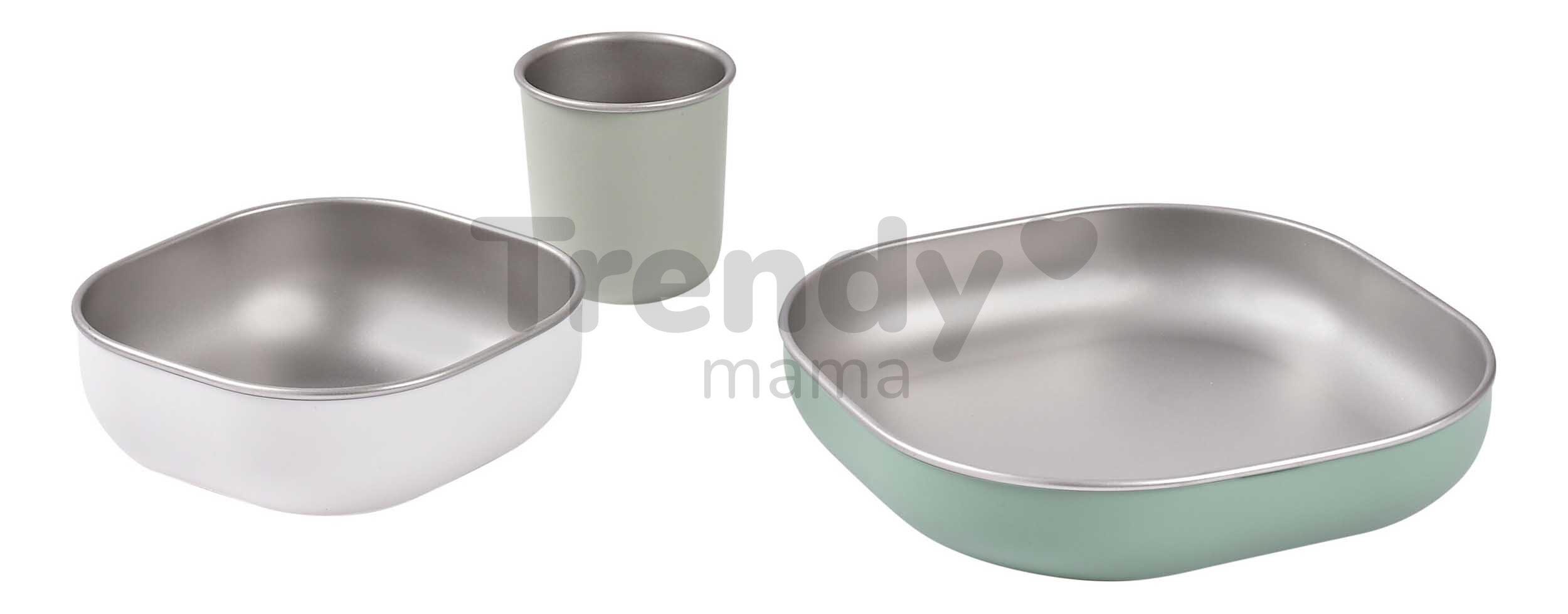 Jedálenská súprava Stainless Steel Meal Set Sage Green z dielne prestížnej francúzskej značky Beaba predstavuje všetko, čo k prvému skutočnému jedlu detičky a rodičia potrebujú. Trojdielna jedálenská súprava v odtieňoch zelenej a sivej z nehrdzavejúcej ocele pozostáva z hlbokého taniera, misky a pohára. Táto jedálenská súprava Beaba je špeciálne navrhnutá pre potreby detičiek, ktoré začínajú samostatne jesť a je vhodná pre bábätká už od 4 mesiacov.