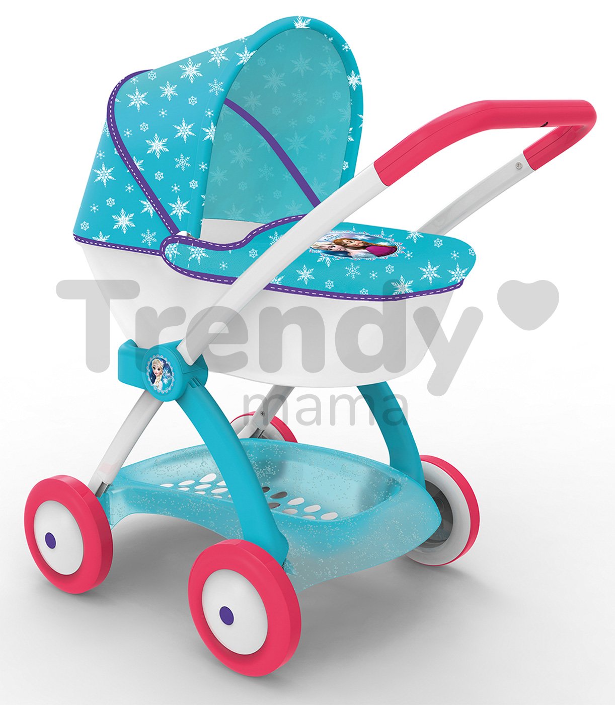 Kočík pre bábiky Frozen z dielne renomovaného výrobcu Smoby je moderný hlboký kočiarik na vozenie bábiky. Rozprávkové prevedenie a modro-biela farebná kombinácia s potlačou snehových vločiek a princezien z rozprávky Frozen - Ľadové kráľovstvo si získa srdcia všetkých malých mamičiek. Kočiar pre bábiky je stabilný a pevný kočík pre detskú bábiku veľkú 42 cm. Vďaka štyrom kolieskam sa ľahko ovláda. Výška rúčky kočiara je 58 cm a radosť spraví všetkým dievčatkám od 18 mesiacov.