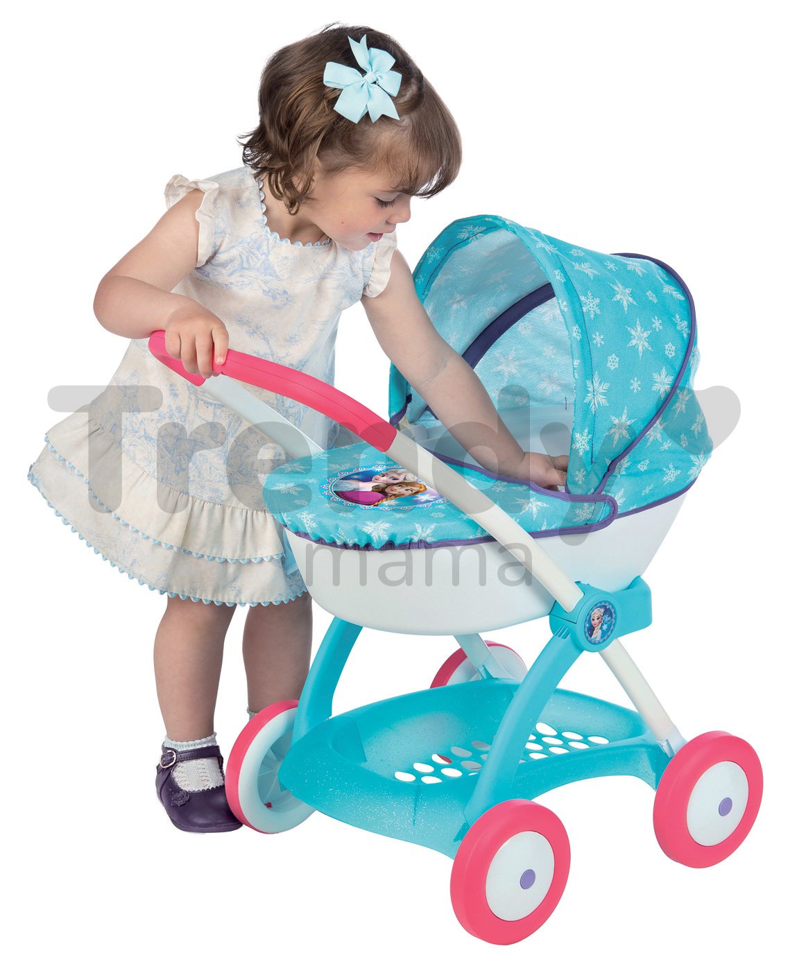 Kočík pre detskú bábiku je kvalitný francúzsky výrobok, vyrobený s citom pre francúzsky dizajn, s pevnou kovovou konštrukciou, v kombinácii s odolnými plastami. Plastový materiál je kvalitný a zamatový na dotyk. Je to realistická replika ozajstného detského kočiara. Kočík pre bábiku je skvelý doplnok, pre každú malú princeznú, ktorá chce svoju bábiku vziať na prechádzku. Rozmery hlbokého kočíka Frozen sú 57*38*58 cm.