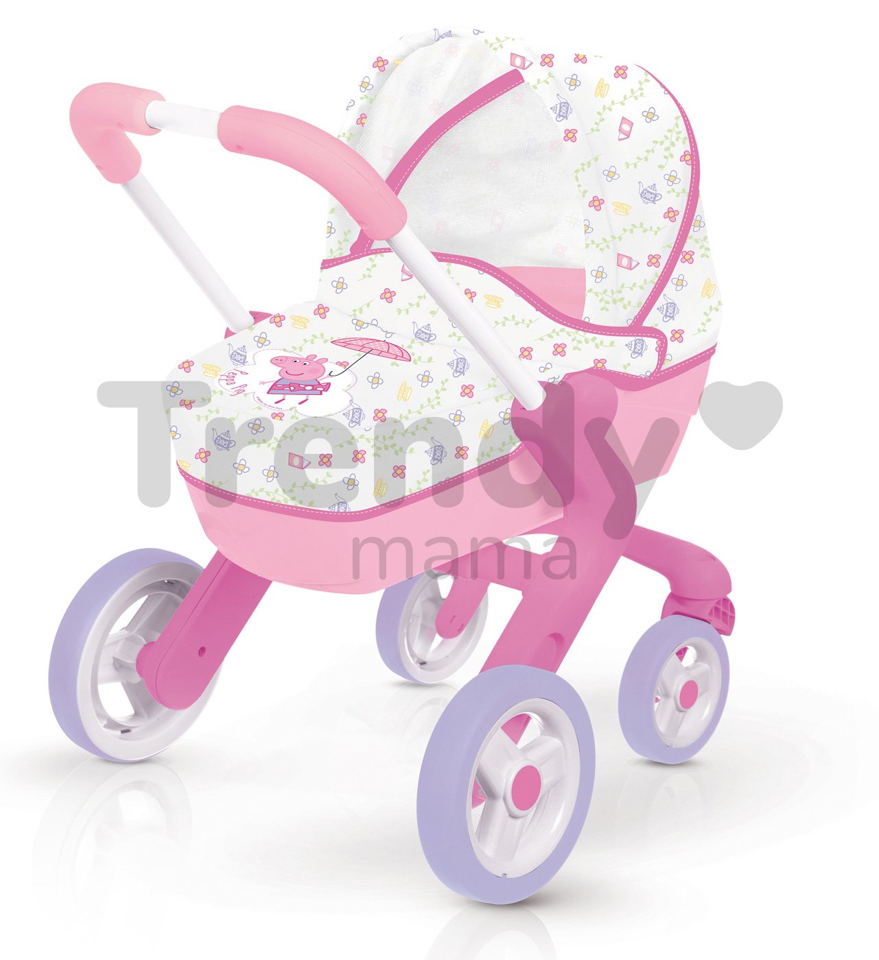 Kočík pre detskú bábiku Peppa Pig je kvalitný francúzsky výrobok, vyrobený s citom pre francúzsky dizajn, s pevnou kovovou konštrukciou, v kombinácii s odolnými plastami. Plastový materiál je kvalitný a zamatový na dotyk. Na bielej prikrývke i strieške je jemná farebná potlač, ktorá sa bude páčiť každej malej mamičke. Hlboký kočiar pre bábiku Smoby je realistická replika ozajstného detského kočiara. Deti milujú hru s bábikou, rady ju kúpu, prezliekajú, kŕmia, uspávajú alebo kočíkujú. Kočík pre bábiku je skvelý doplnok, pre každú malú princeznú, ktorá chce svoju bábiku vziať na prechádzku.