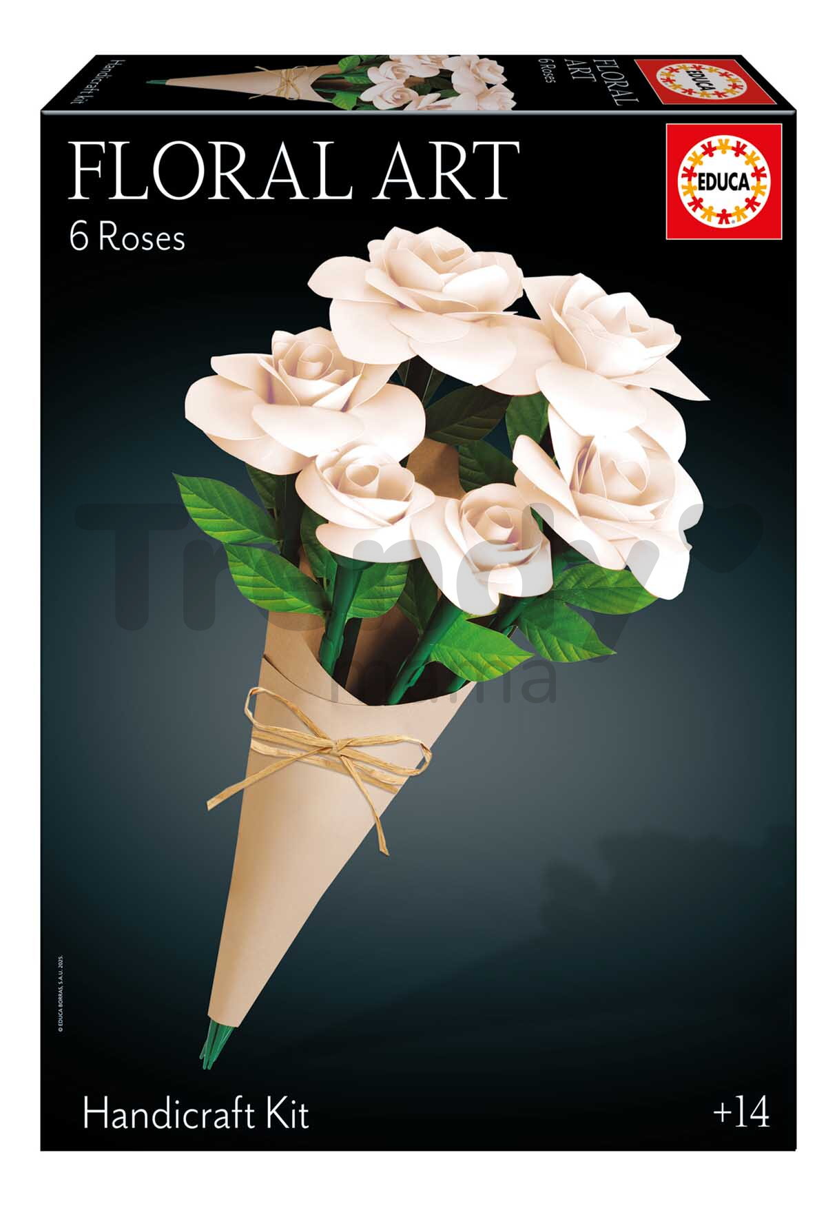Kreatívne tvorenie Floral Art White Roses od španielskeho výrobcu Educa predstavuje originálny darček pre všetky deti a najmä dievčatká od 14 rokov. Kreatívna sada umožní deťom poskladať si kyticu so 6 bielymi ružami, pričom majú k dispozícii kartónové vzory s lupienkami, papierové a plastové dieliky pre vytvorenie nádhernej kytice. Dievčatá získajú pri skladaní veľa radostných zážitkov, vytvarujú si lístky do požadovaného tvaru a prispôsobia si kyticu podľa svojich predstáv.