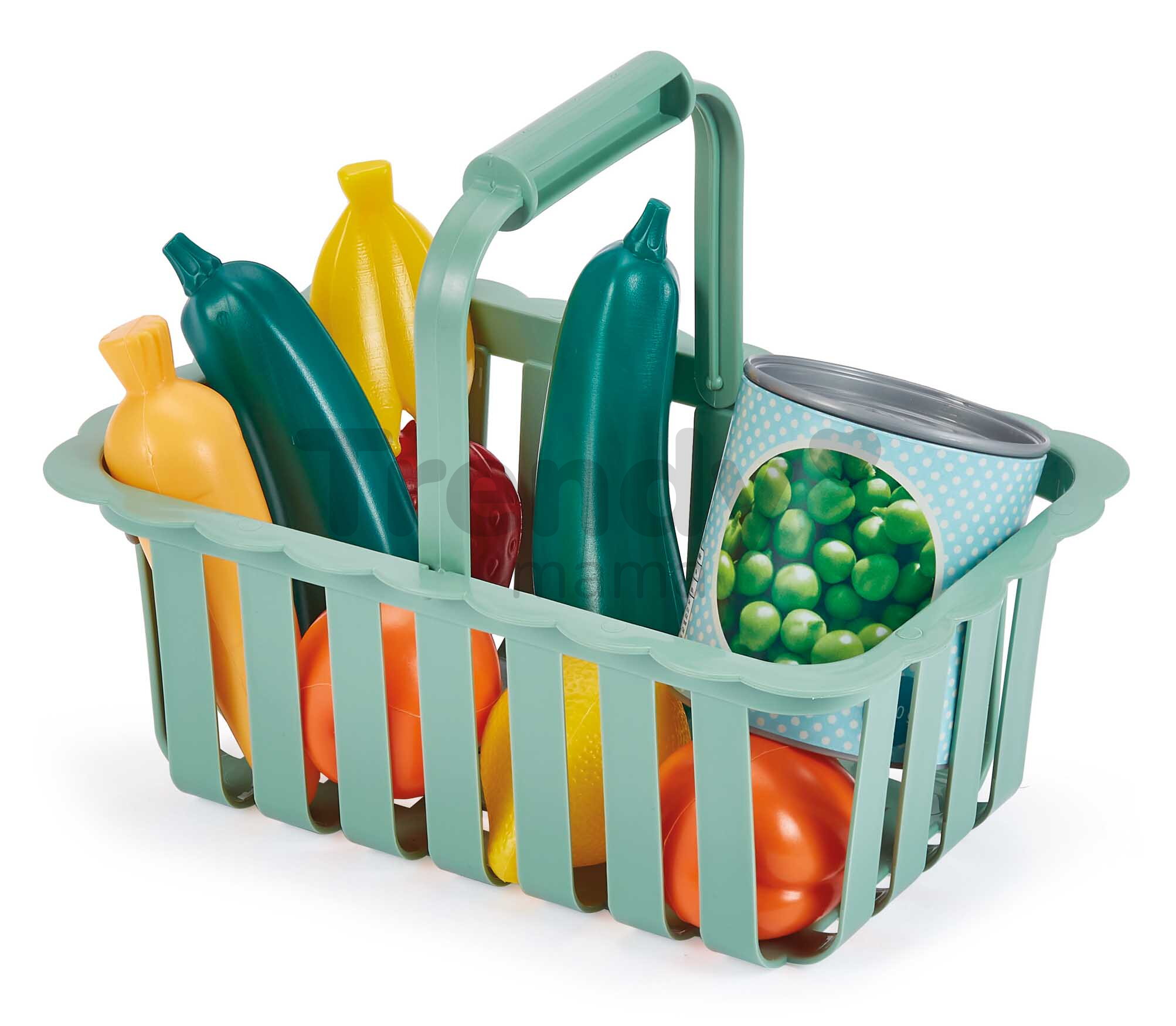 Nákupný košík 100% Chef od francúzskej značky Écoiffier predstavuje praktickú hračku pre deti od 18 mesiacov, ktoré rady pomáhajú pri nákupoch a pri hre ich potom napodobňujú. Detský nákupný košík je vyrobený z kvalitného plastu, vydrží deťom dlhé roky. Pôsobí realisticky, praktická rukoväť umožní deťom jednoduchú manipuláciu. Súčasťou košíka je aj 9 doplnkov, medzi ktorými deťmi nájdu 2 uhorky, konzervu, citrón, mrkvičku a ovocie. Je to ideálny doplnok k detským obchodíkom alebo kuchynkám, dá sa s ním hrať aj samostatne.