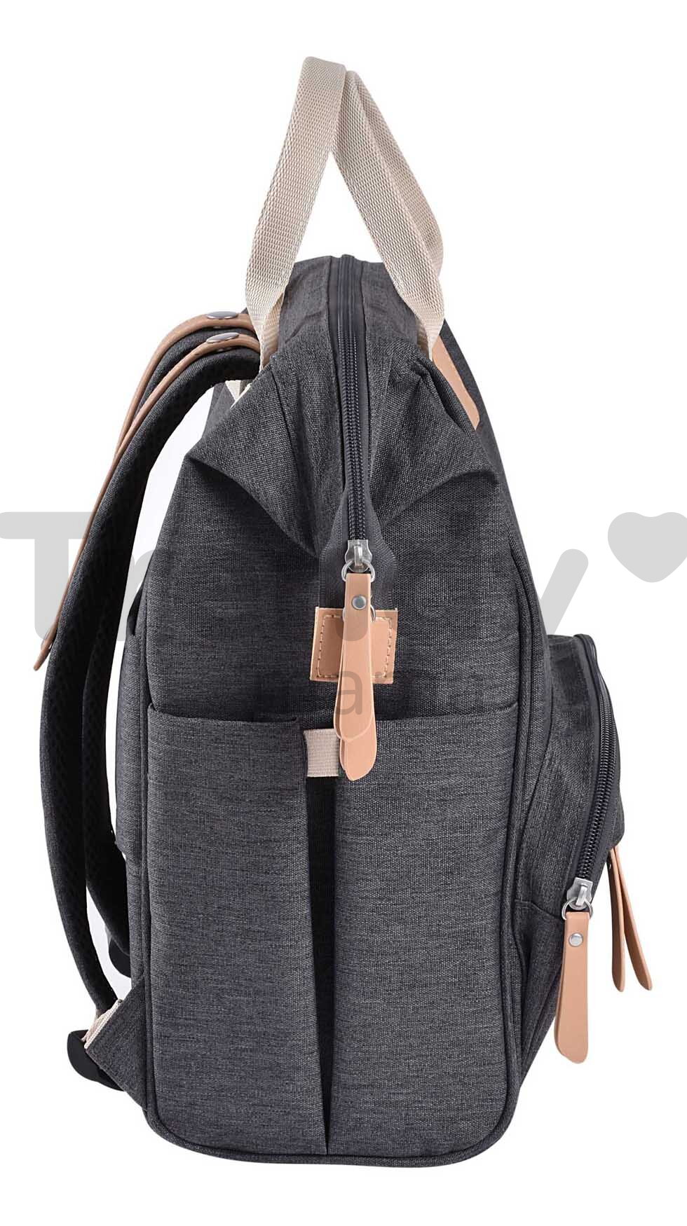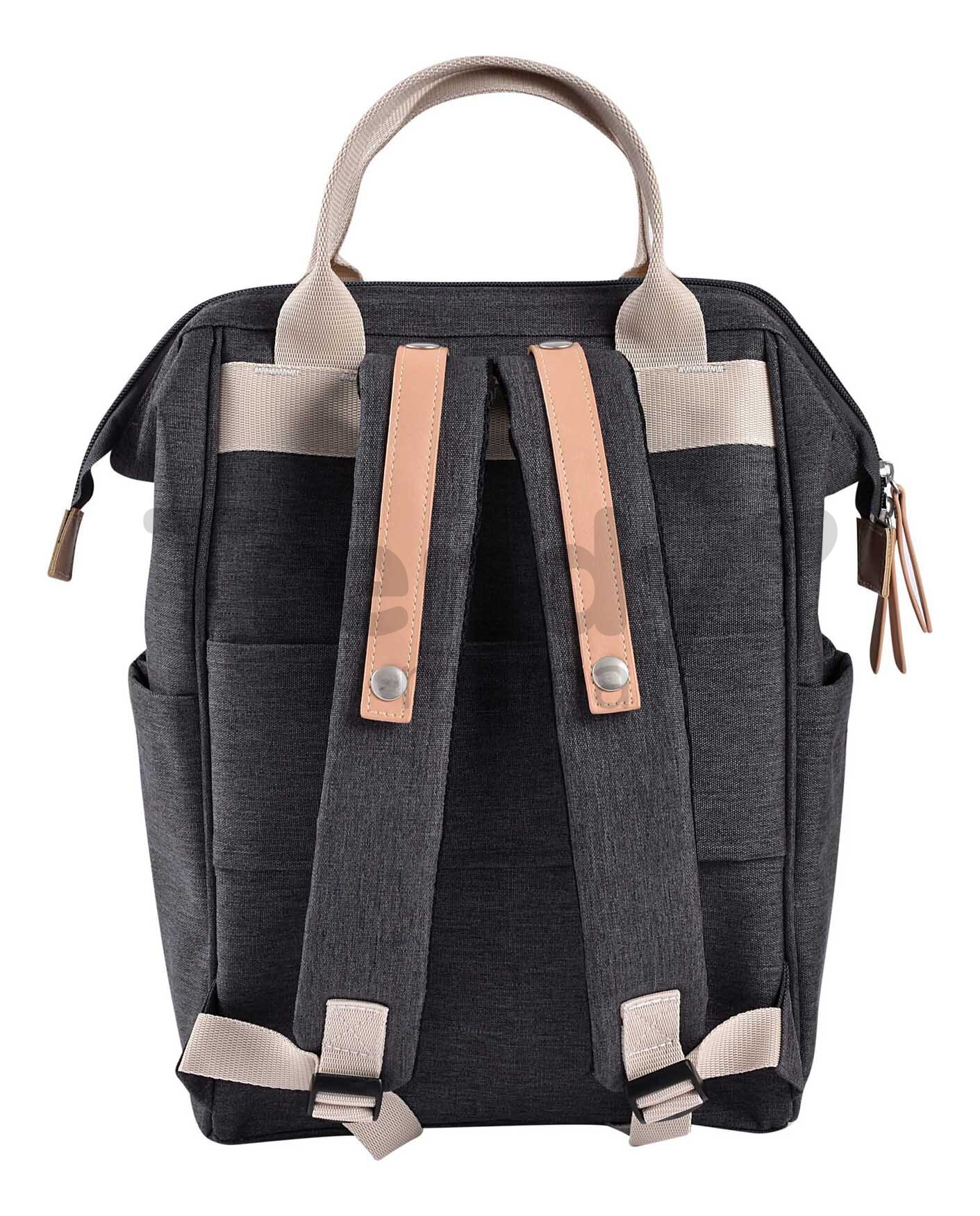 Aby bol batoh maximálne praktický, je rozdelený na 3 vnútorné priehradky, pričom v ňom nájdete aj oddelenú priehradku na vlhkú bielizeň. Súčasťou tašky je aj termoobal na fľašu, pohodlná prebaľovacia podložka, popruhy ku kočíku a popruh na kufor. Dostatok úložného priestoru na drobnosti poskytnú aj menšie vonkajšie priehradky. Batoh na prebaľovanie má celkový objem 18 litrov a bez problémov sa doň zmestia veci rodičov aj bábätka. Batoh odporúčame čistiť vlhkou handričkou a nechať vysušiť na vzduchu.