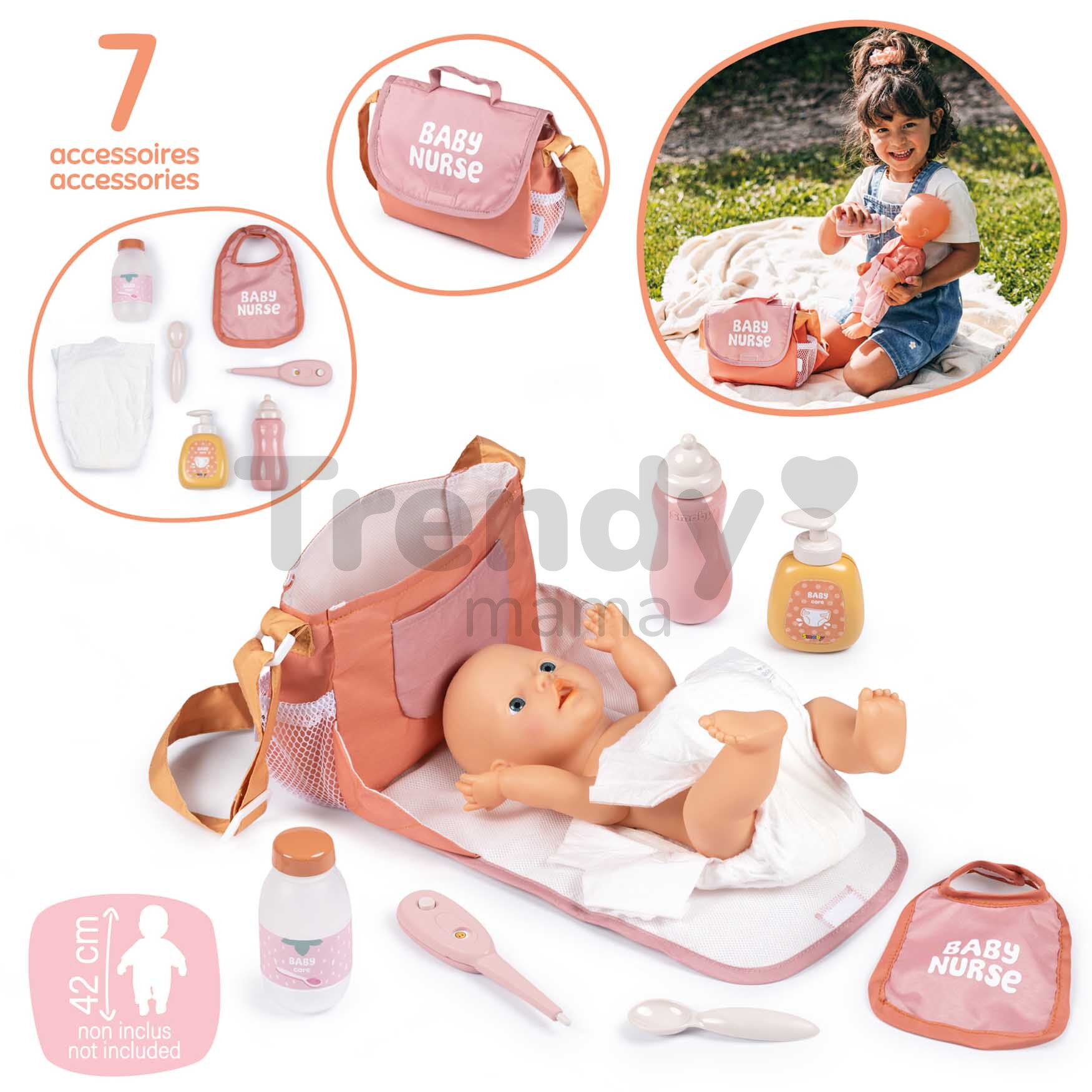 Prebaľovacia taška je vhodná pre bábiku s maximálnou výškou 42 cm (bábika nie je súčasťou balenia). Francúzsky Smoby je popredný výrobca detských hračiek, ktoré vynikajú precízne vypracovanými detailmi a najvyššou kvalitou. Materiál na hračkách Smoby je pevný, odolný, no zároveň jemný a hladký k detským rúčkam, zamatový na dotyk. Farby na hračkách Smoby rozvíjajú v deťoch kreativitu a individualitu, upútajú každé aj najmenšie dieťatko. Hračky spĺňajú aj tie najvyššie bezpečnostné kritériá a sú zárukou francúzskej kvality a originálneho vzhľadu.