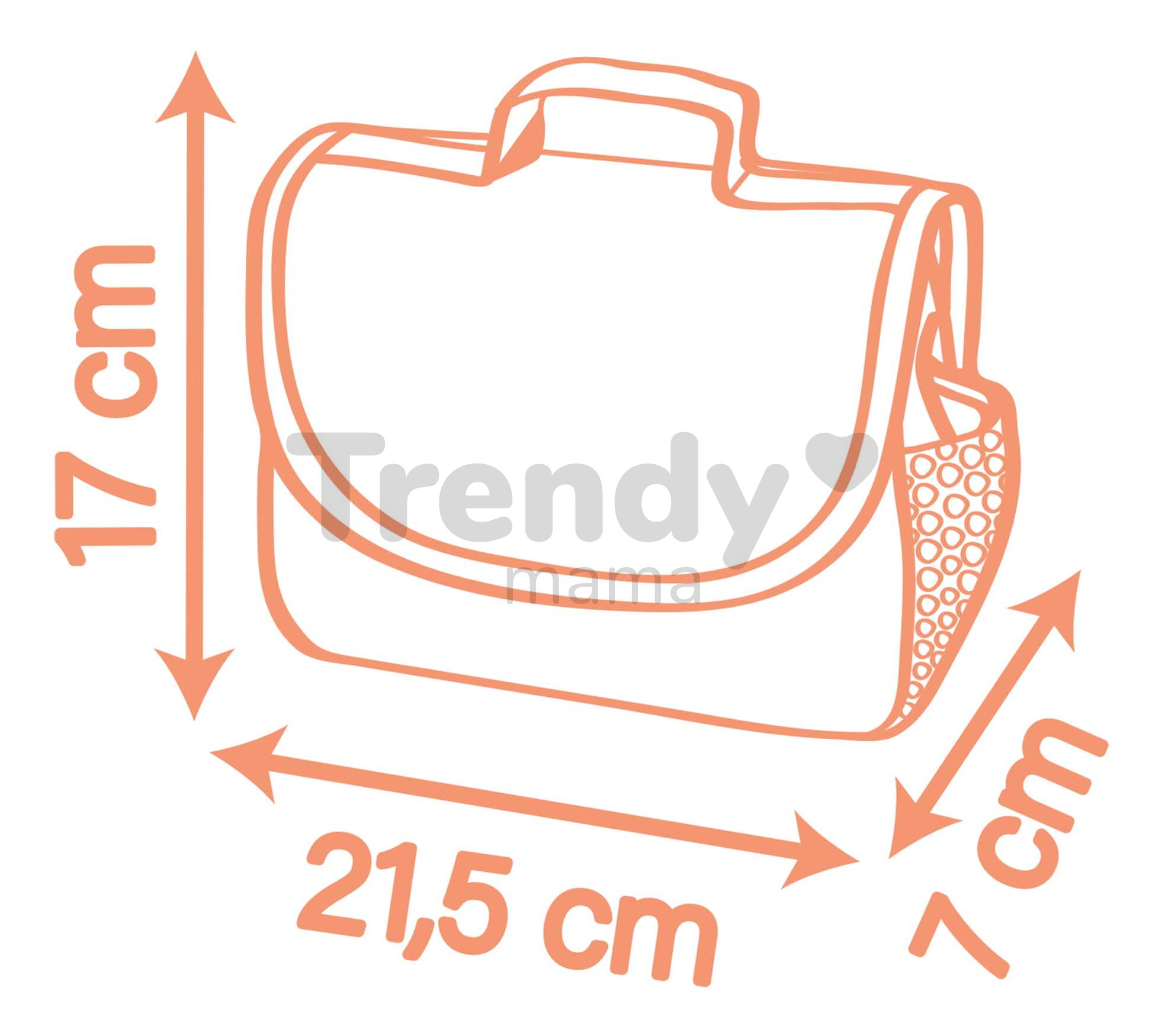 Praktická taška taška je vyrobená z kvalitného textilu, na bočnej strane je umiestnené vrecko na fľašku. Rozmery tašky sú 22*7*17 cm, dievčatkám sa s ňou ľahko manipuluje, je vybavená aj praktickou rukovätou, takže ju môžu nosiť ako klasickú tašku. S touto realistickou hračkou sa dievčatá dosýta zabavia, zahrajú sa s bábikami nielen doma, ale aj na návštevách so svojimi súrodencami a kamarátmi. Hra s detskou bábikou je pre deti dôležitá aj pri rozvíjaní komunikačných a jazykových schopností, získavajú pocit zodpovednosti a približujú sa svetu dospelých.