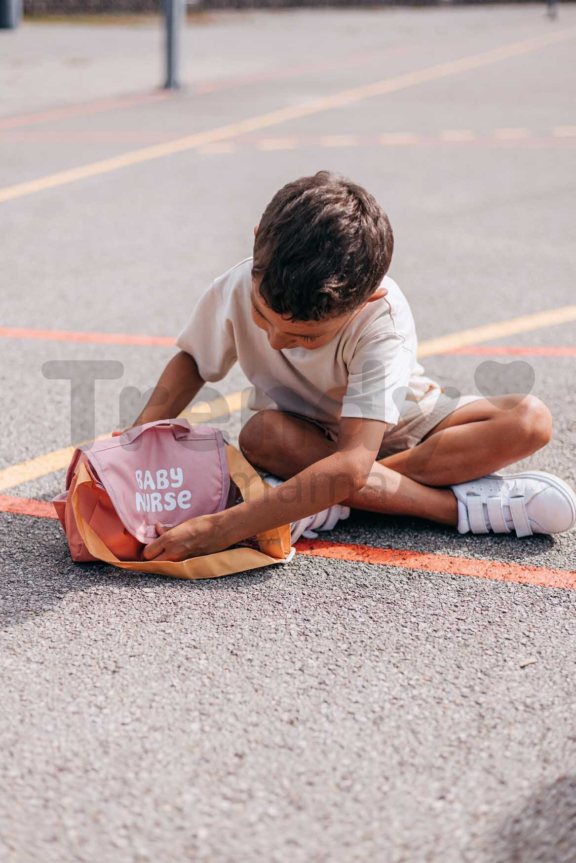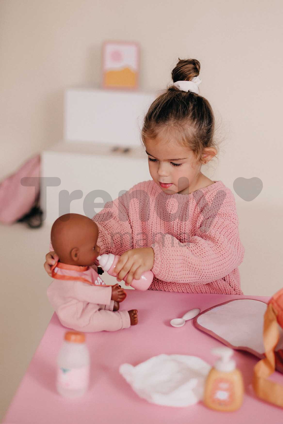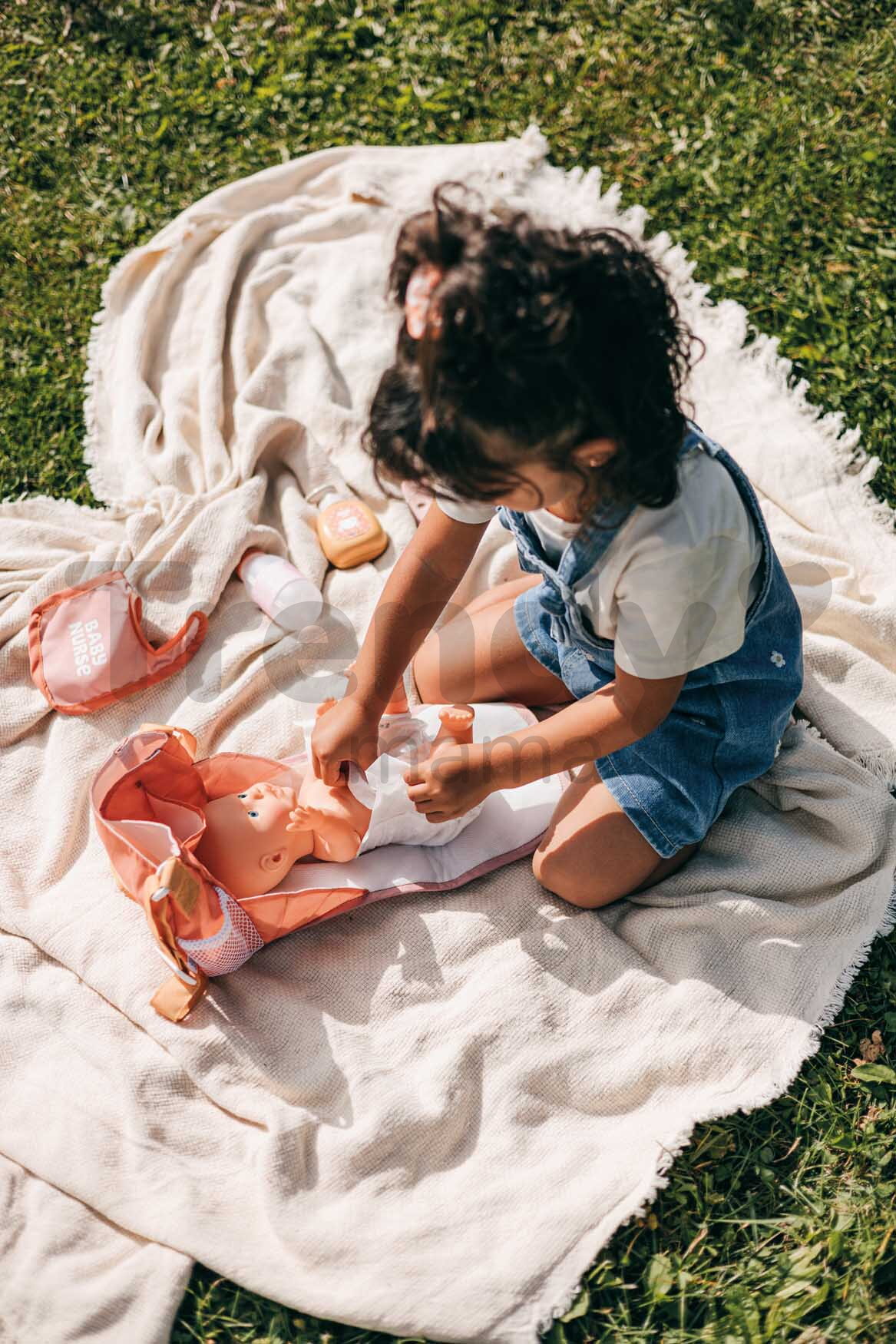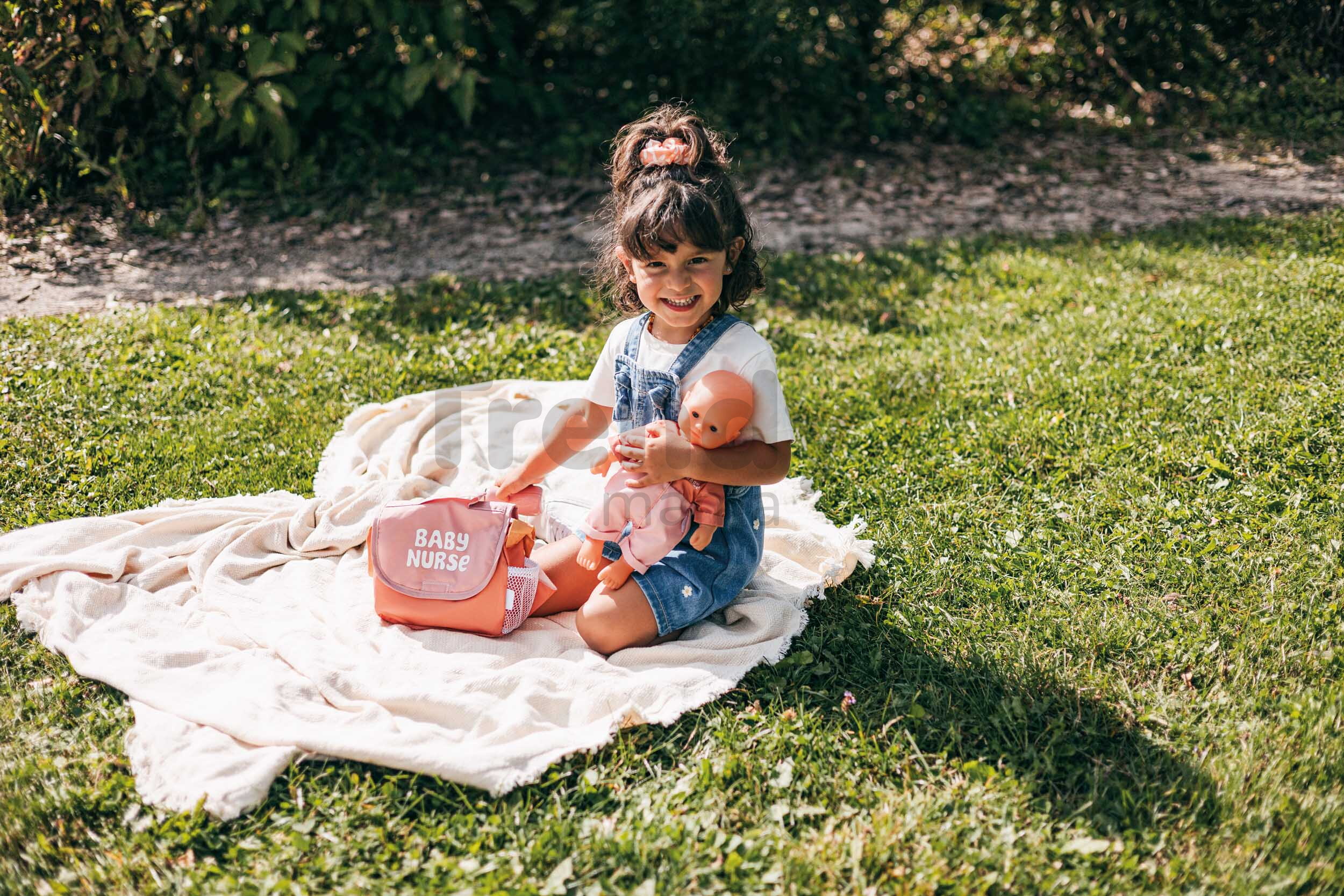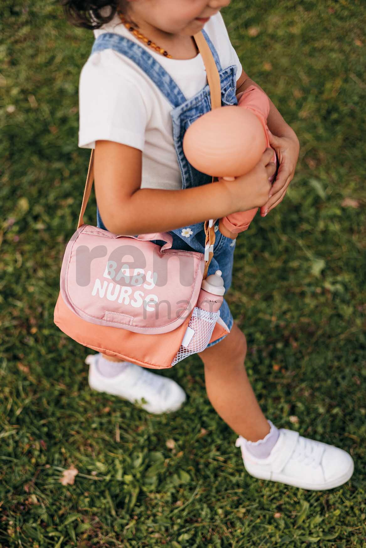 Prebaľovacia taška s plienkou Changing Bag Soft z populárnej kolekcie Baby Nurse predstavuje perfektný darček pre všetky dievčatká od 3 rokov, ktoré sa rady hrajú s bábikami. Taška sa dá pri starostlivosti o bábiku jednoducho rozložiť a deti ju pri prebaľovaní položia na podložku. Taška pre bábiku je vyhotovená vo farbách ružovej, oranžovej a bielej, takže očarí každé dievčatko. Je vybavená popruhom s nastaviteľnou dĺžkou a úložným priestorom, takže si dievčatká môžu vziať celú výbavu kamkoľvek so sebou. V 8-dielnej súprave doplnkov sa nachádza okrem tašky aj fľaška na kŕmenie, lyžička, teplomer, plienka, fľaštička, podbradník a sirup.
