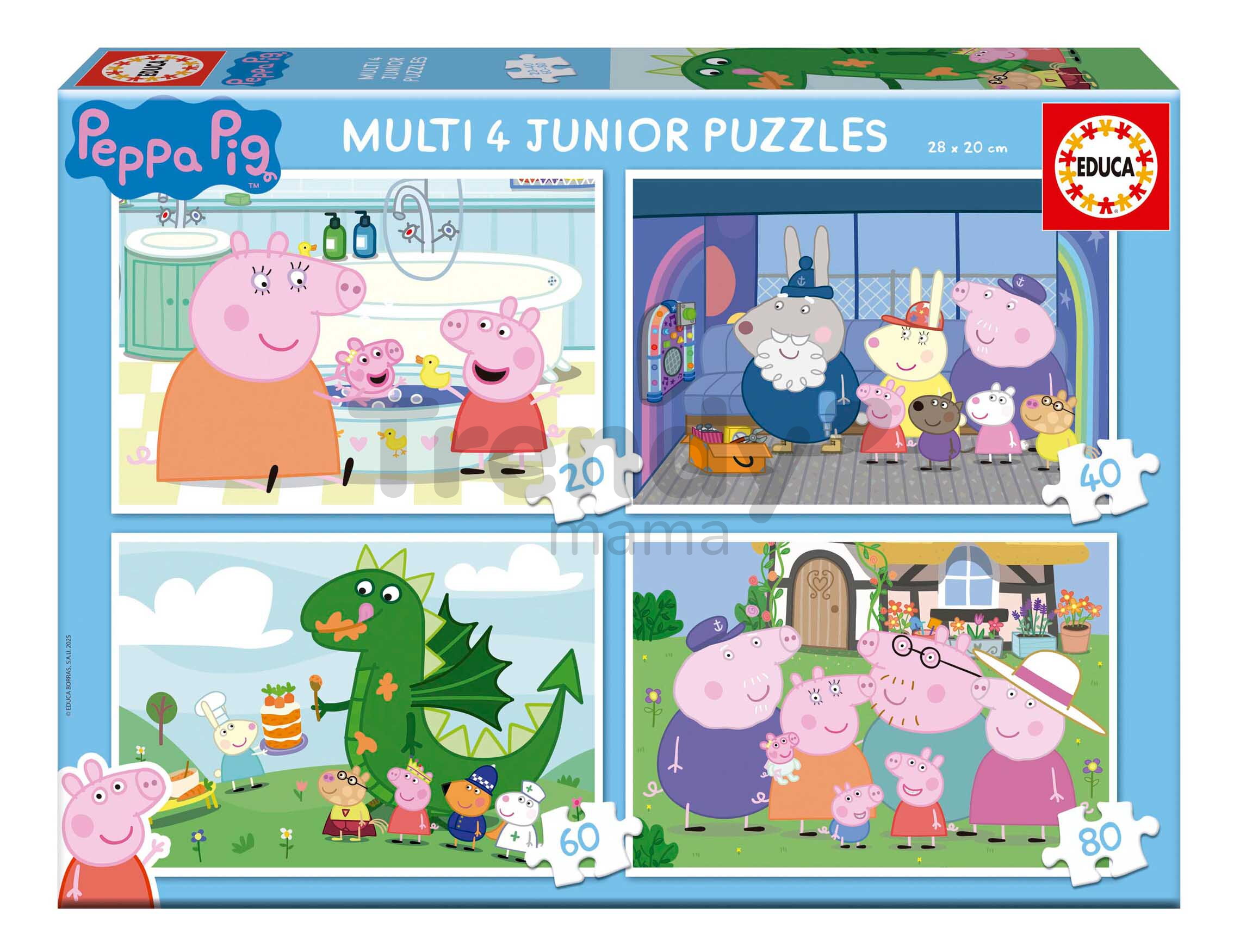 Puzzle Peppa Pig Progressive od španielskeho výrobcu Educa predstavujú výborný darček pre chlapcov a dievčatá už od 4 rokov. Tieto originálne puzzle sú progresívne a deti si vďaka nim zlepšujú svoje skladacie schopnosti. Obsahujú 4 obrázky s motívom Peppa Pig, pričom každý z nich má iný počet dielikov. Skladanie puzzle sa začína najjednoduchším obrázkom s 20 dielikmi, potom deti pokročia na puzzle so 40 dielikmi a nasledujú ešte 60 a 80-dielne puzzle. Vďaka tomu si dieťa postupne trénuje zručnosť pri skladaní puzzle a učí sa ich rýchlejšie skladať.