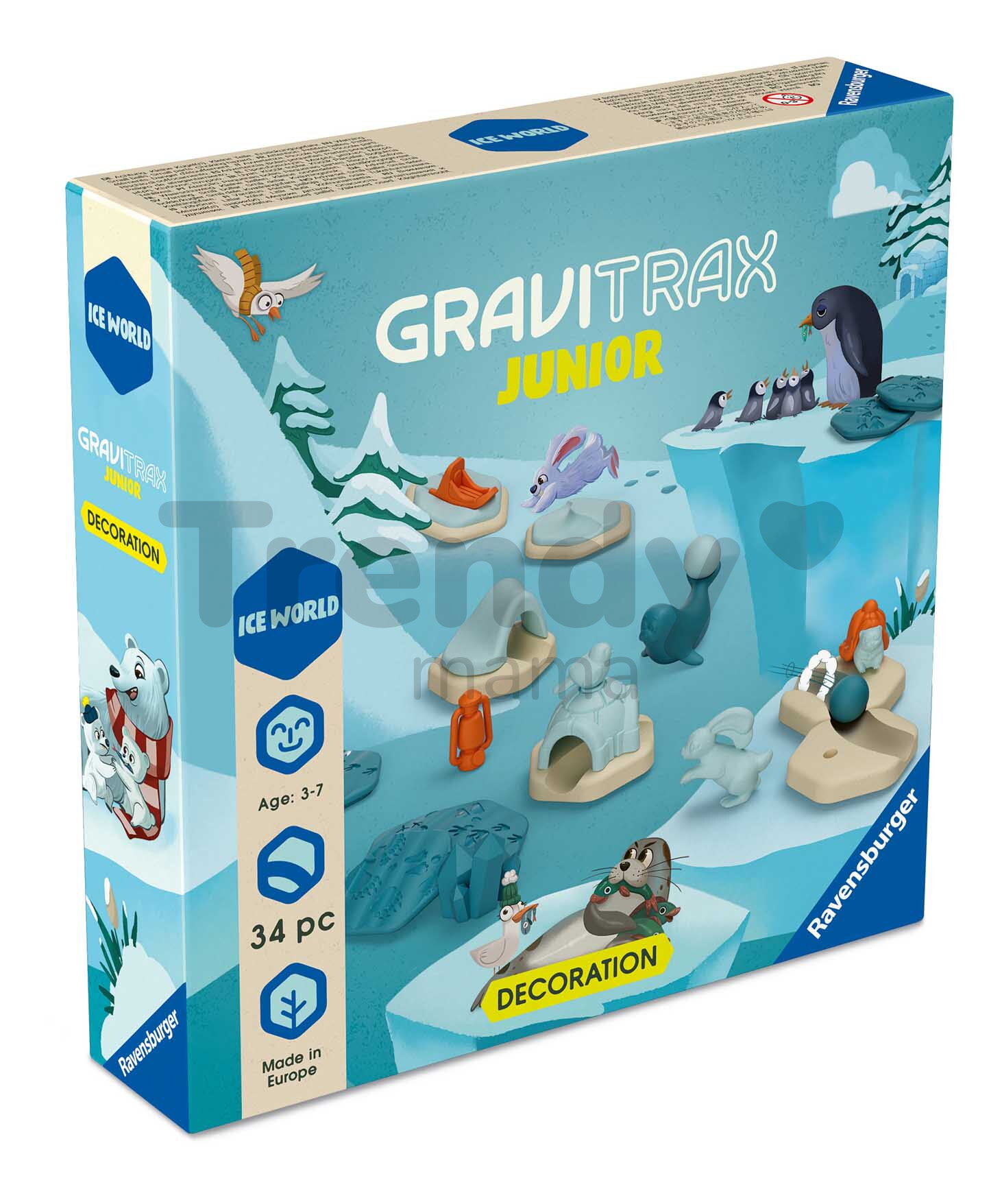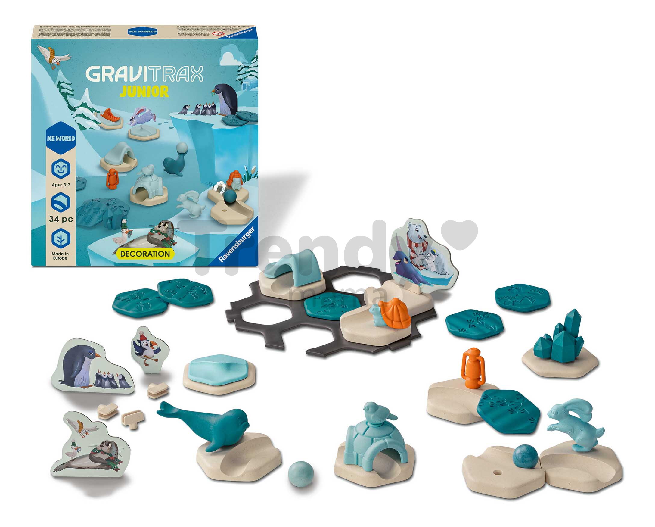 Rozšírenie pre guľôčkové dráhy Ľadový svet Ice Extension Junior predstavuje kompatibilný doplnok k základným štartovacím súpravám guľôčkových dráh GraviTrax Junior. Kvalitná sada 34 stavebných dielikov z prvotriedneho dreveného bioplastu prinesie deťom nové možnosti pri navrhovaní a rozširovaní základnej dráhy. Naplno uplatnia svoju fantáziu pri stavbe komplikovanejších dráh, tematické dieliky s motívom Ľadového sveta s rôznymi figúrkami divokých zvieratiek ozdobia detskú izbičku.