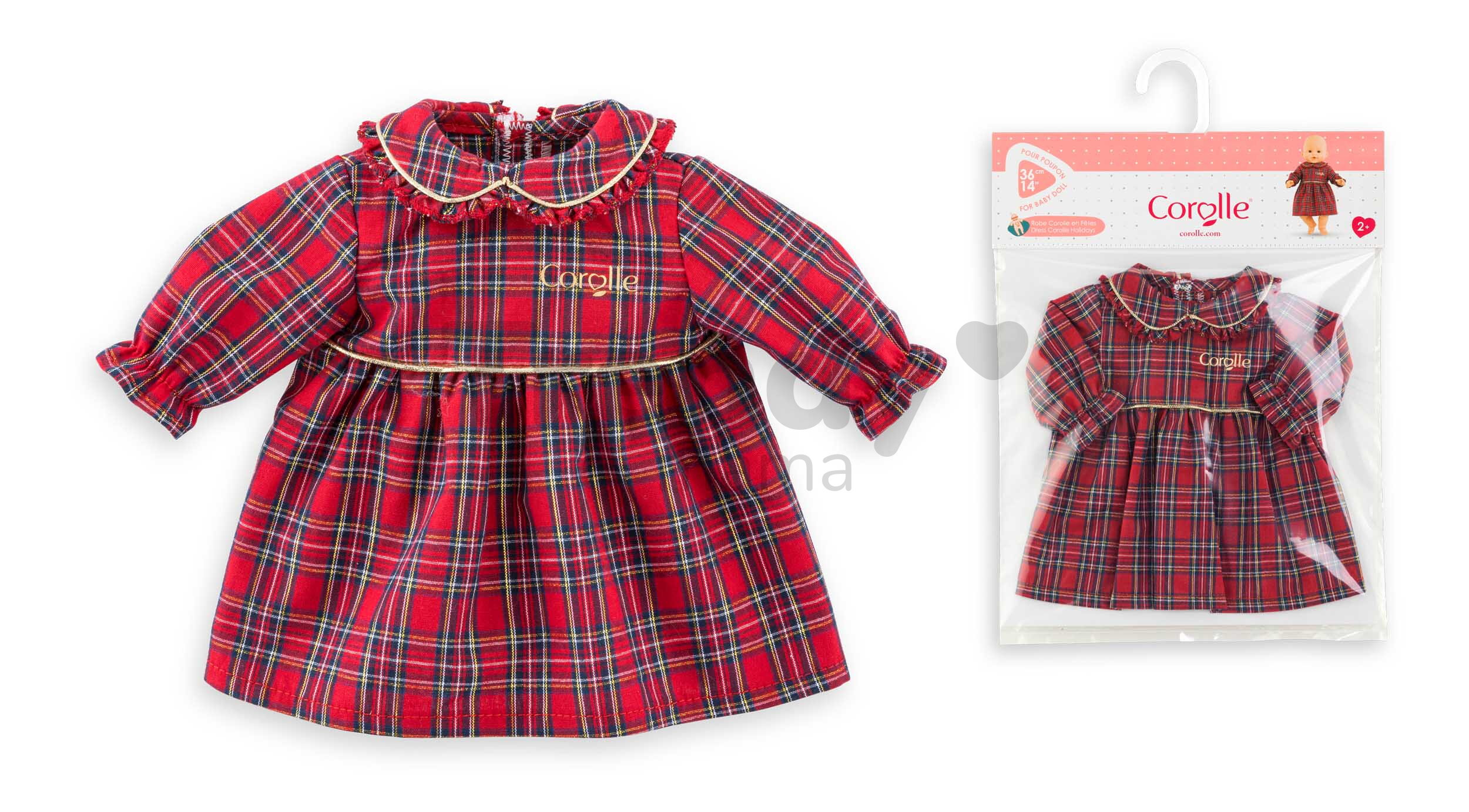 Šťastné a veselé Vianoce, milá bábika! Nádherné šaty pre bábiku Dress Corolle Holidays Mon Grand Poupon z dielne francúzskej značky Corolle budú tým najkrajším darčekom, aký si dieťatko pod stromčekom môže nájsť. Červené šaty s tartanovým vzorom z vianočnej kolekcie sú určené pre bábiku Corolle s veľkosťou 36 cm a sú dôkladne prepracované do toho najmenšieho detailu.
