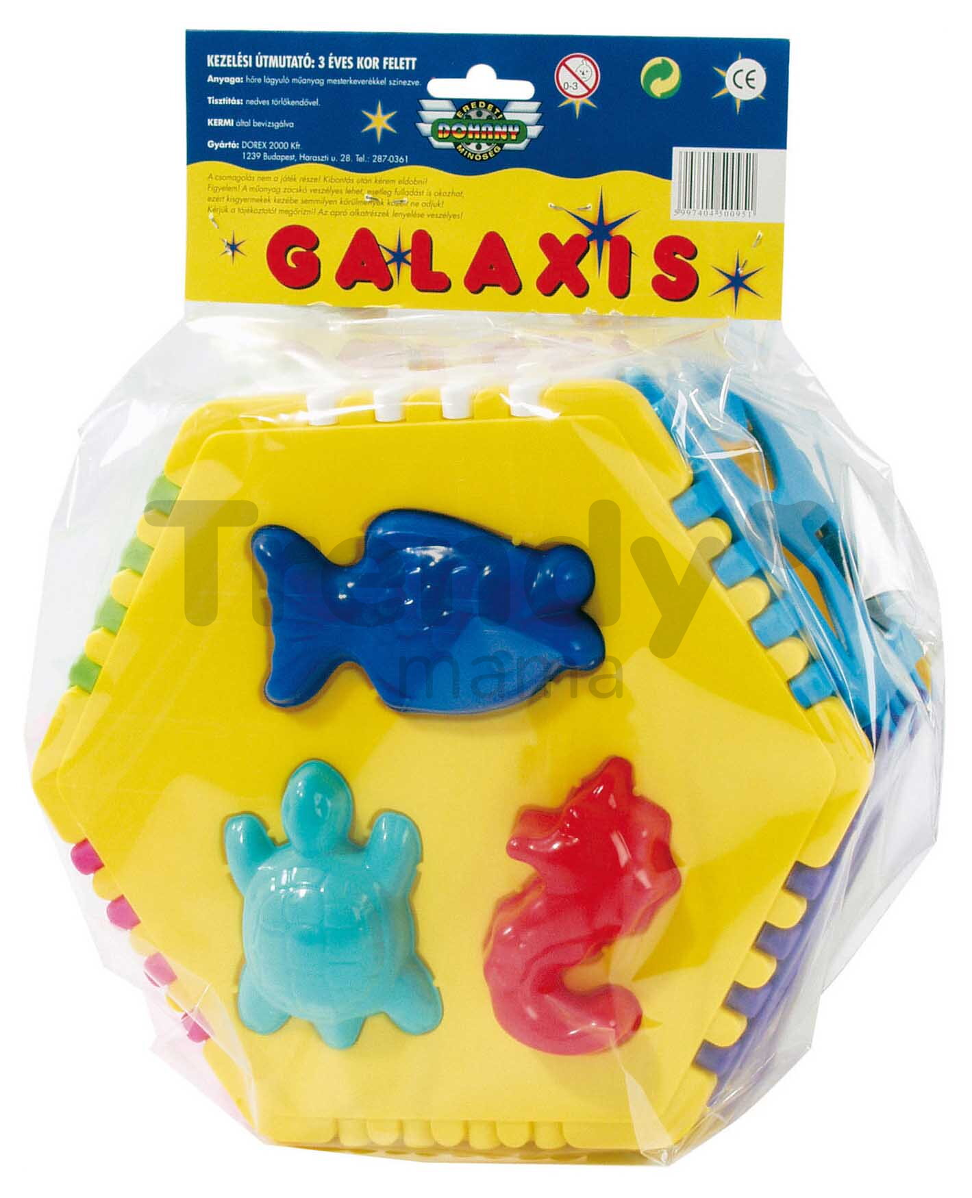 Kocky pre deti majú rôzne tvary a farby sú tam aj zvieratká, kvetinky a geometrické tvary. Rozmery detskej Čarovnej galaxie sú 25*23*17 cm. Kocky a konštrukcia sú vyrobené z kvalitného plastového materiálu, ktorý je jemný a príjemný na jemné detské rúčky. Dohány je európsky výrobca detských hračiek s dlhoročnou tradíciou, ktoré sú kvalitné a spĺňajú bezpečnostné a kvalitatívne štandardy prísnych európskych noriem. Kocky sú vyrobené vo farbách žltej, modrej, červenej, zelenej a bielej farby.