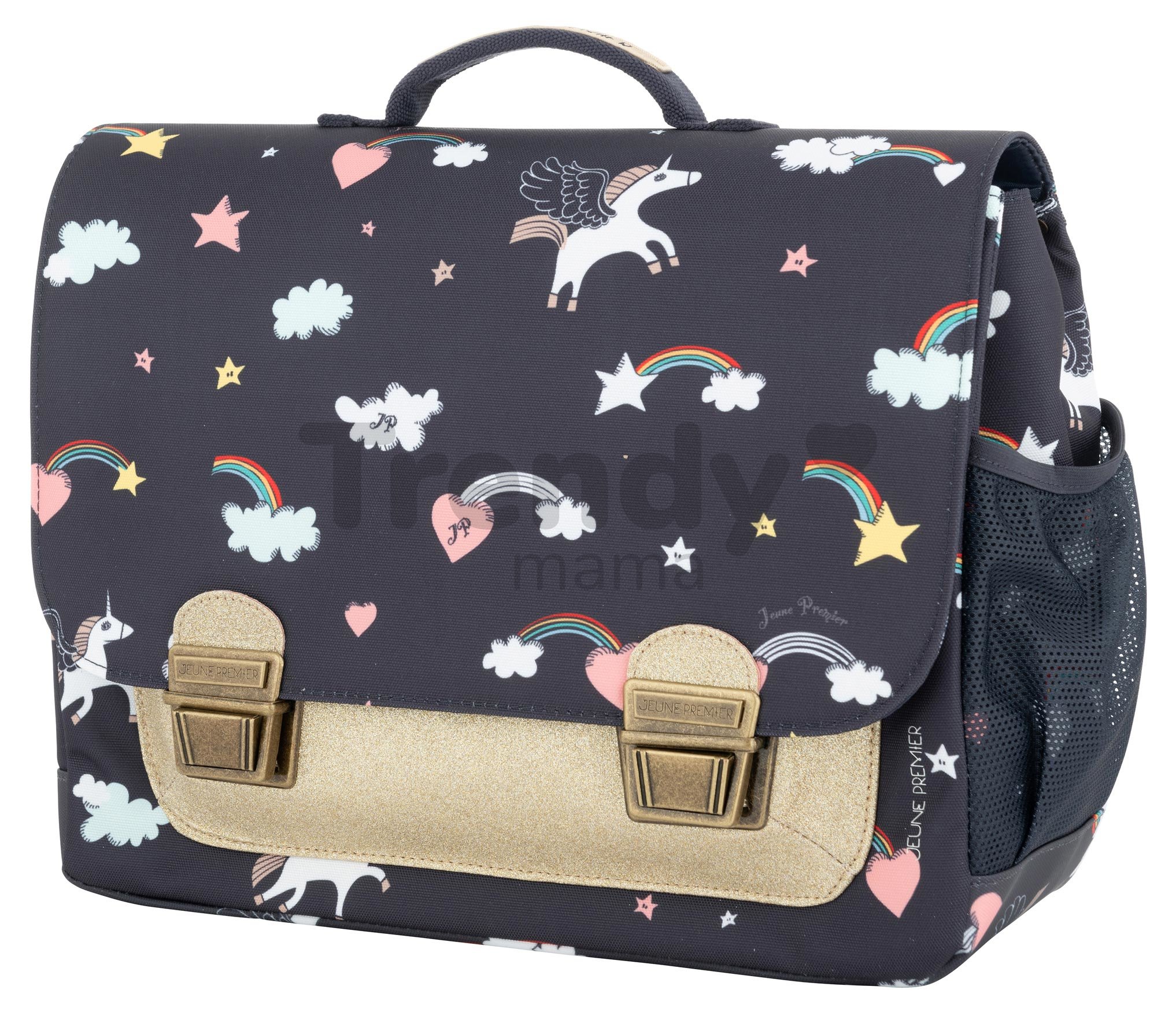 Na dizajne si tvorcovia tašky Jeune Premier dali skutočne záležať. Sami sú rodičia a vedia, že do školy sa chodí s radosťou práve vtedy, keď si deti môžu na chrbát zavesiť tašku, ktorú každý obdivuje. Zabudnite na nudné, jednofarebné školské tašky, ktoré má takmer každý žiak a vyleťte spolu s jednorožcom priamo k dúhe a do sveta fantázie a kreativity. Ukladať si každý večer zošity a učebnice do krásnej aktovky Jeune Premier bude pre deti oveľa príjemnejšie a spoločnosť im bude robiť krásny jednorožec. Dizajn navrhnutý rukou už na prvý pohľad nesie známky originality, ktorú inde len tak ľahko nenájdete.