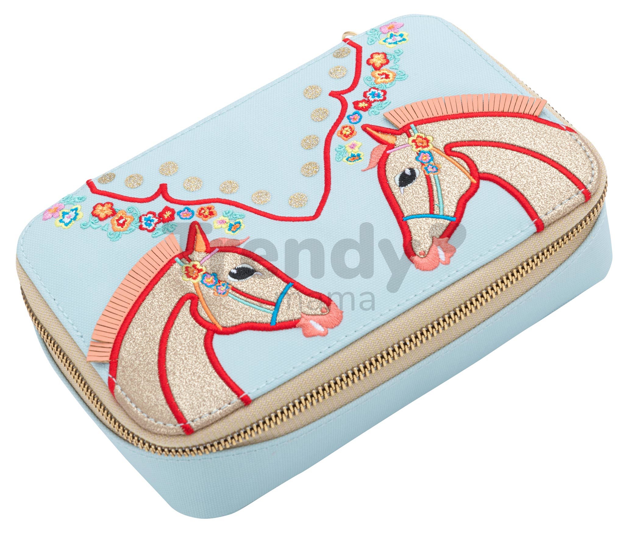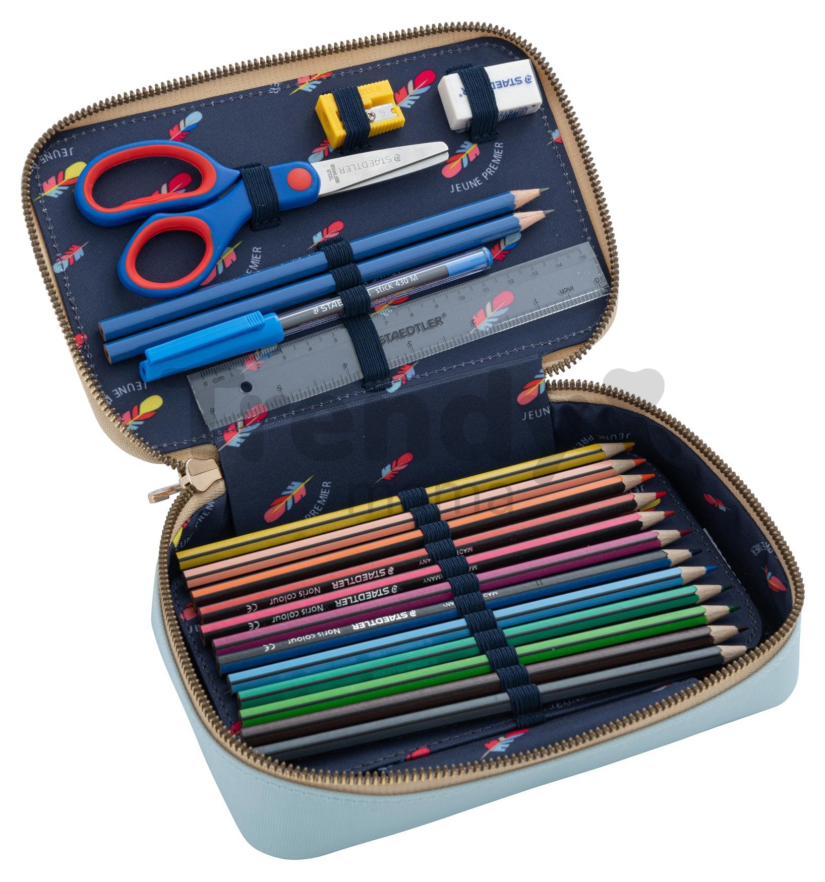Luxusný peračník Jeune Premier s motívom očarujúcich koní vyzerá krásne zvonku, no má toho čo ponúknuť aj pri pohľade zvnútra. Jeho objem 1,8 litra toho deťom síce veľa nepovie, no dôležitejšie je, že sa doň bez problémov zmestia všetky písacie potreby školopovinných detí. Peračník je dokonca až po okraj naplnený písacími potrebami, ktoré deti využijú každučký školský deň. Obsahuje pero, ceruzky, gumu, strúhadlo, pravítko, farbičky, fixky aj nožnice. Jeden praktický zips zabezpečí, že k farbičkám, ceruzkám, perám či fixkám sa deti dostanú rýchlo a ľahko. Tento jednokomorový peračník Jeune Premier s písacími potrebami je nevyhnutnou súčasťou výbavy školáka. Práve preto si na jeho dizajne dali návrhári Jeune Premier skutočne záležať.