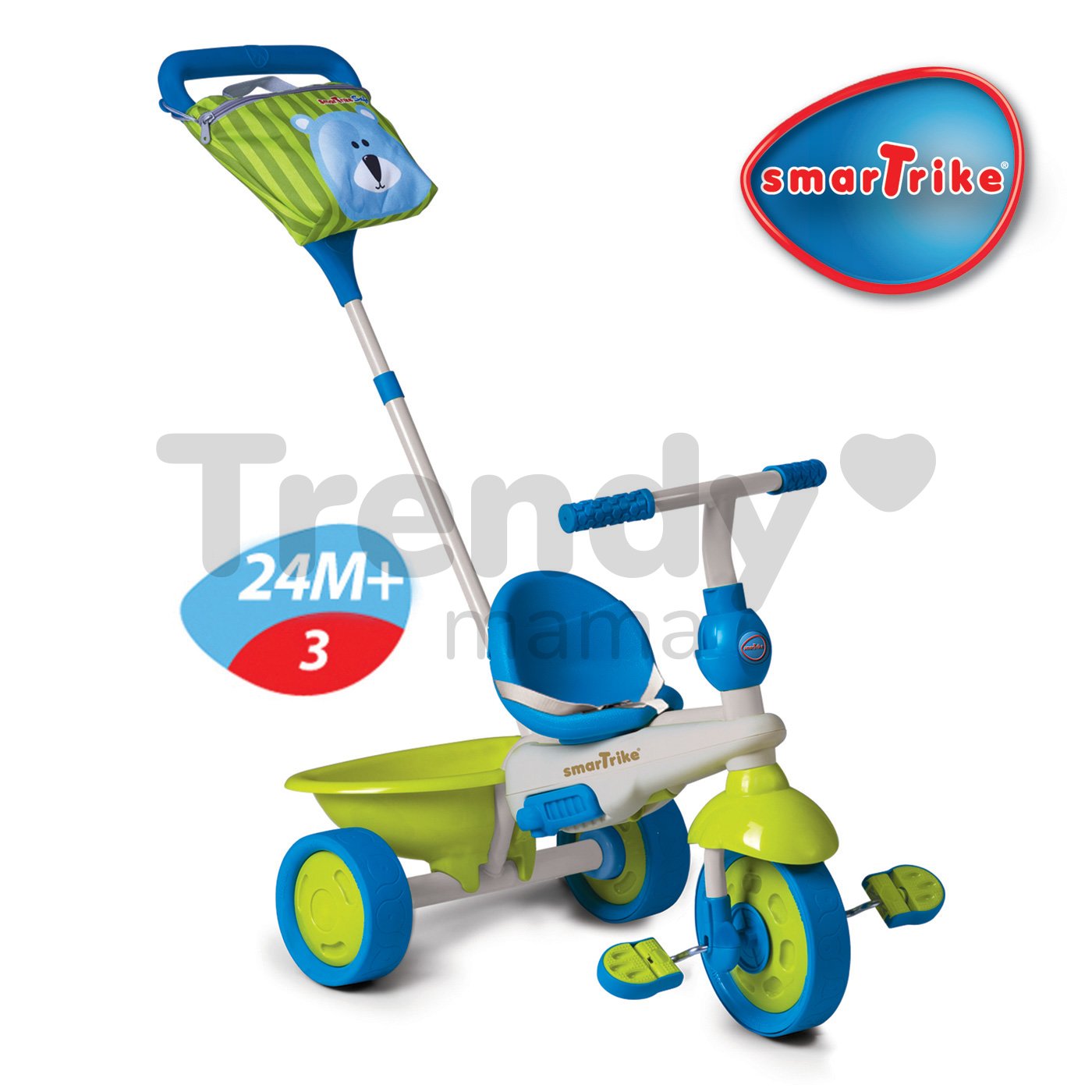 Konštrukcia detskej trojkolky je pevná a kovová, v kombinácii s odolným plastom, ktorý má dlhoročnú trvácnosť. Vďaka popruhom a ochranným prvkom sa nemusíte obávať pádu či akéhokoľvek zranenia. Detská trojkolka Safari Medveď s motívom krásneho modrého medveďa má pekné modro-zelené farebné prevedenie s bielymi detailmi, a je vhodná ako pre dievčatká, tak aj pre chlapcov. SmarTrike je celosvetovo najpredávanejšia a naviac oceňovaná značka detských trojkoliek. Na trhu pôsobí už dekádu, a ako prvý výrobca prišiel s inováciou výškovo nastaviteľnej rúčky pre rodiča. SmarTrike je svetový líder v predaji, produkcii a inováciách detských trojkoliek. S miliónmi trojkoliek predaných každoročne je zaručene zárukou kvality.