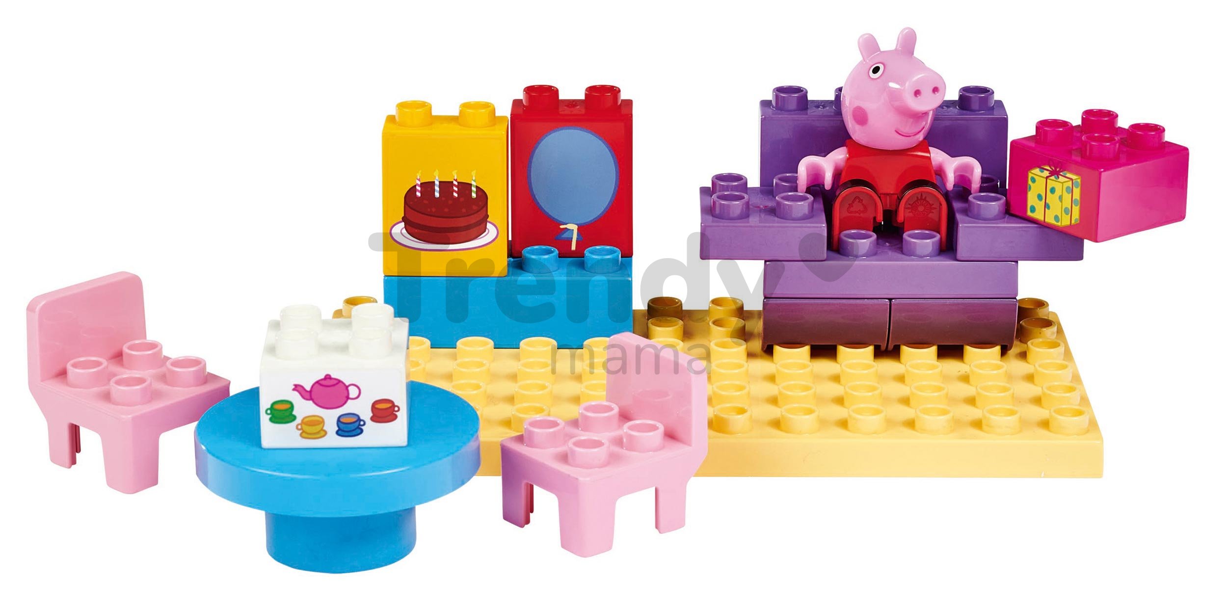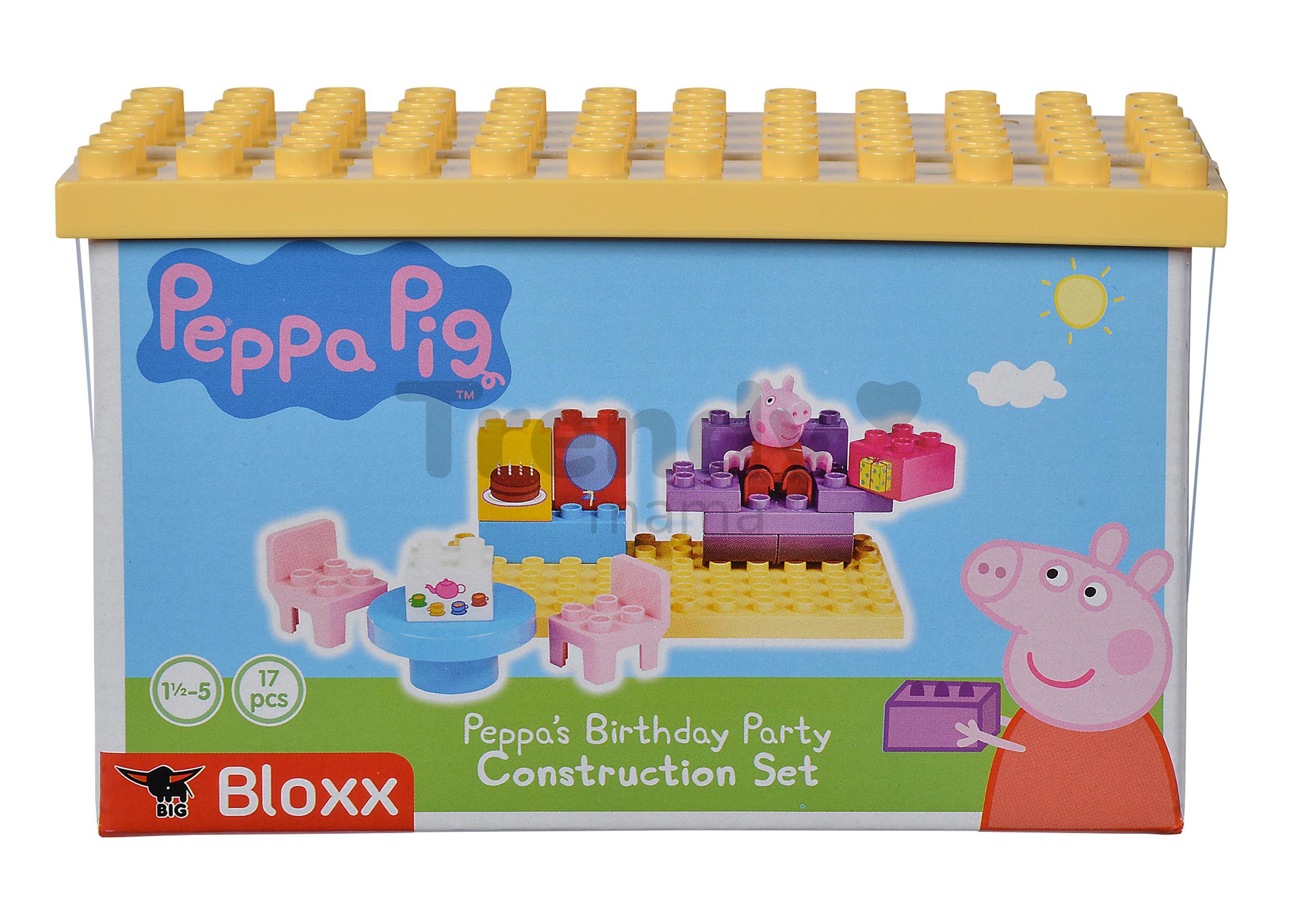 Stavebnica Peppa Pig Basic Sets II. PlayBIG Bloxx je tým najkrajším darčekom pre každé dieťa od 18 mesiacov, ktoré by si rado poskladalo svoju prvú stavebnicu. Detská stavebnica je vyhotovená s motívom obľúbeného prasiatka Peppa Pig, takže ihneď zaujme chlapcov a dievčatá. V 17-dielnej pestrofarebnej stavebnici sa nachádza figúrka prasiatka, ktoré oslavuje narodeniny v kuchyni s darčekom, balónom, tortou a čajovou súpravou so stolíkom a stoličkami. Dieťa si stavia stavebnicu podľa svojich predstáv a zažije s prasiatkom skvelú narodeninovú oslavu.