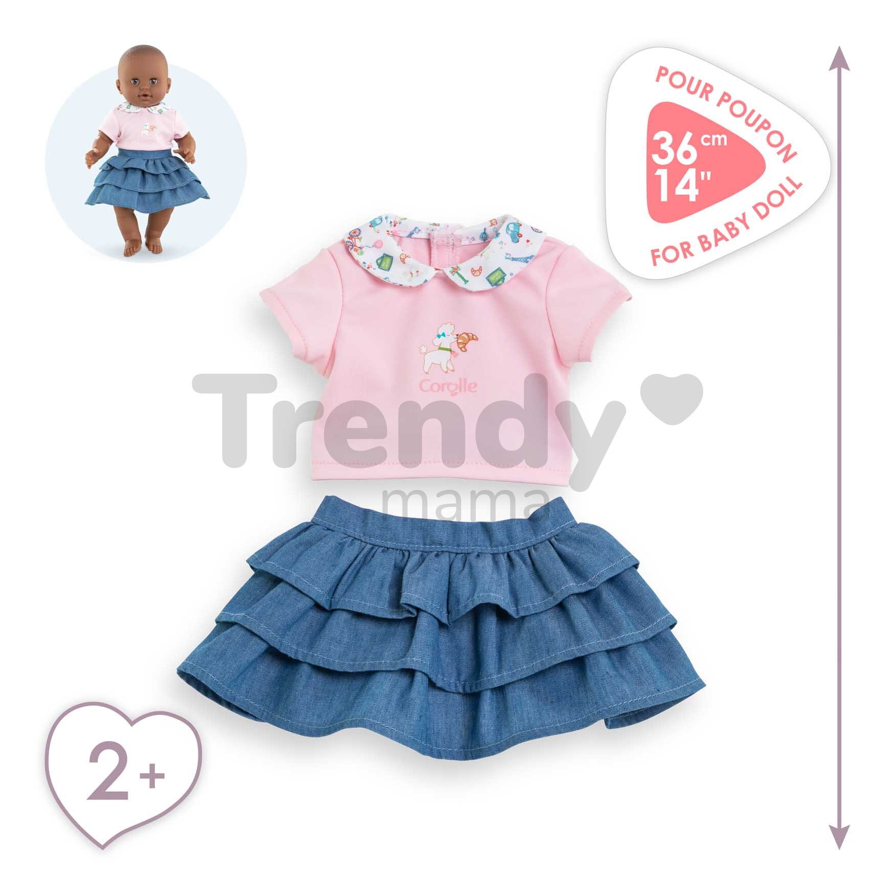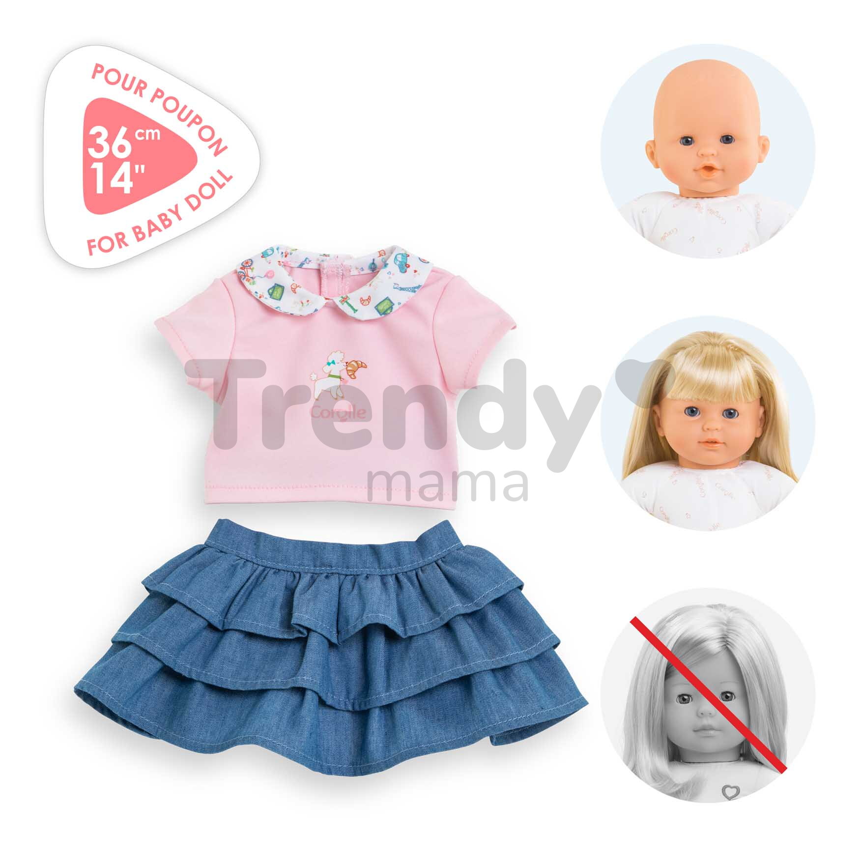 Džínsová volánová sukňa a ružové tričko sa postarajú o to, že každá hra s bábikou Corolle bude nezabudnuteľná a deťom prinesie množstvo nových zážitkov. So štýlovým oblečením Corolle môžu deti svoju bábiku prezliekať kedykoľvek sa im zachce. Dokonale prepracované detaily tohto oblečenia a prvotriedne materiály spestria každú hru s bábikou, ktorá rozvíja detskú fantáziu, ale aj komunikačné schopnosti a hmatovú citlivosť.