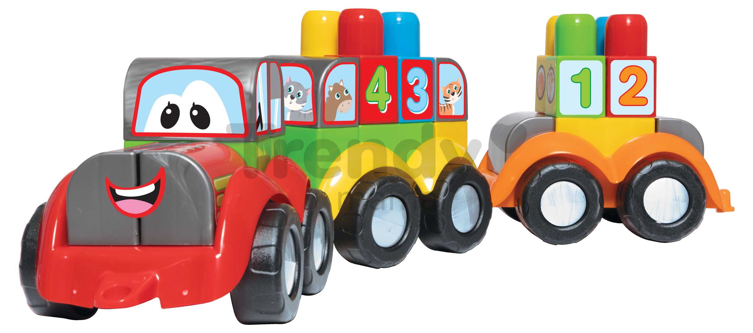 Traktor s didaktickými kockami je skvelý darček pre chlapcov a dievčatá už od 12 mesiacov. Červený traktor je vybavený 2 prívesmi, na ktoré si deti poukladajú didaktické kocky v rôznych farbách. Sada kociek je vyzdobená originálnymi obrázkami zvieratiek a takisto aj písmenkami abecedy a číslami. Vďaka tomu sa deti už od útleho veku naučia rátať základné čísla, spoznávajú prvé písmenká abecedy. Traktor s kockami pomáha deťom spoznávať aj nové farby hravou formou pri hre na farmárov.