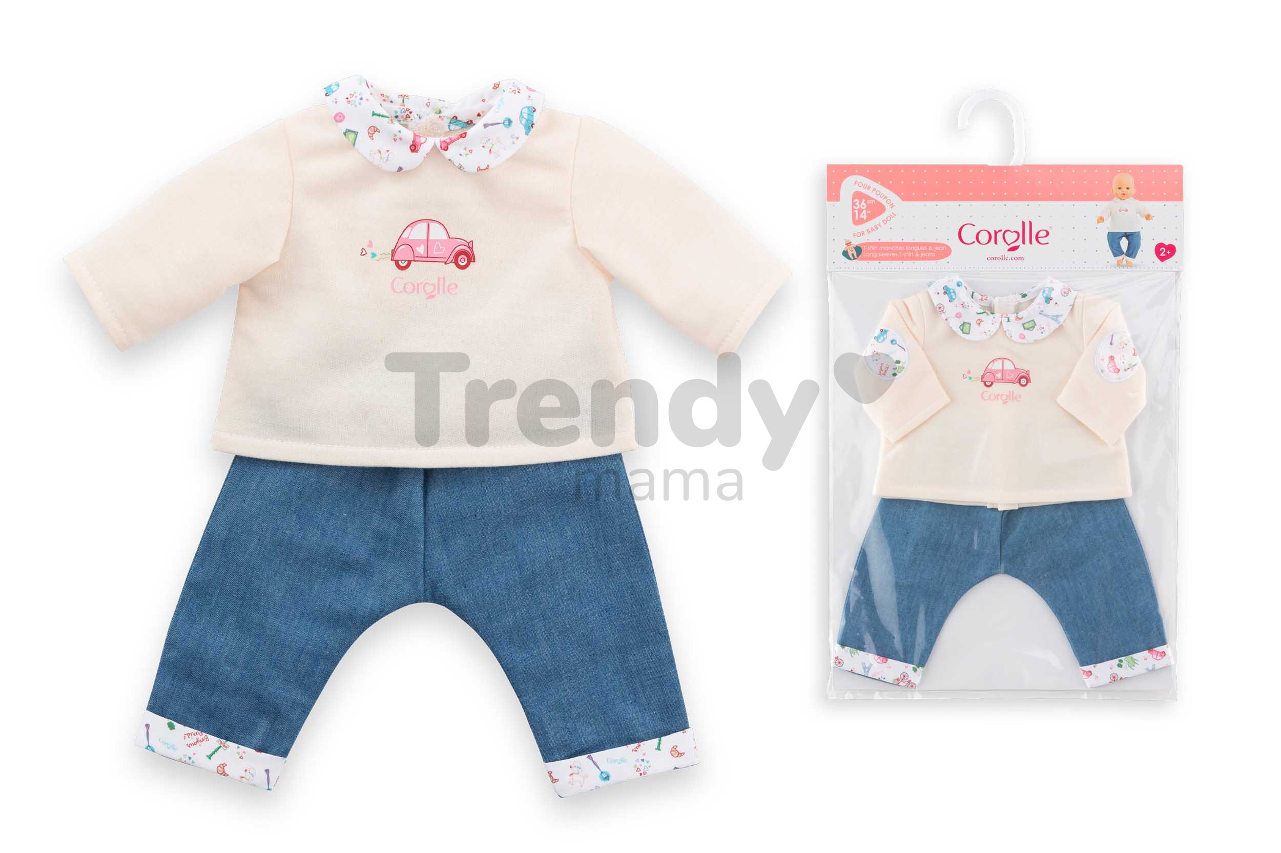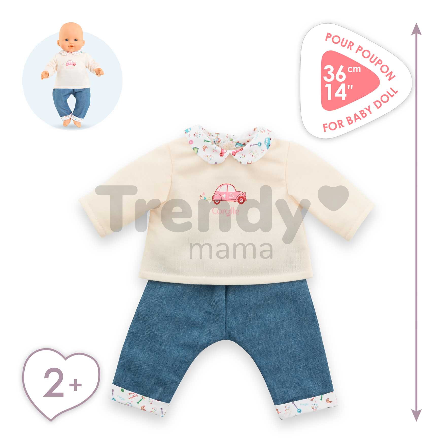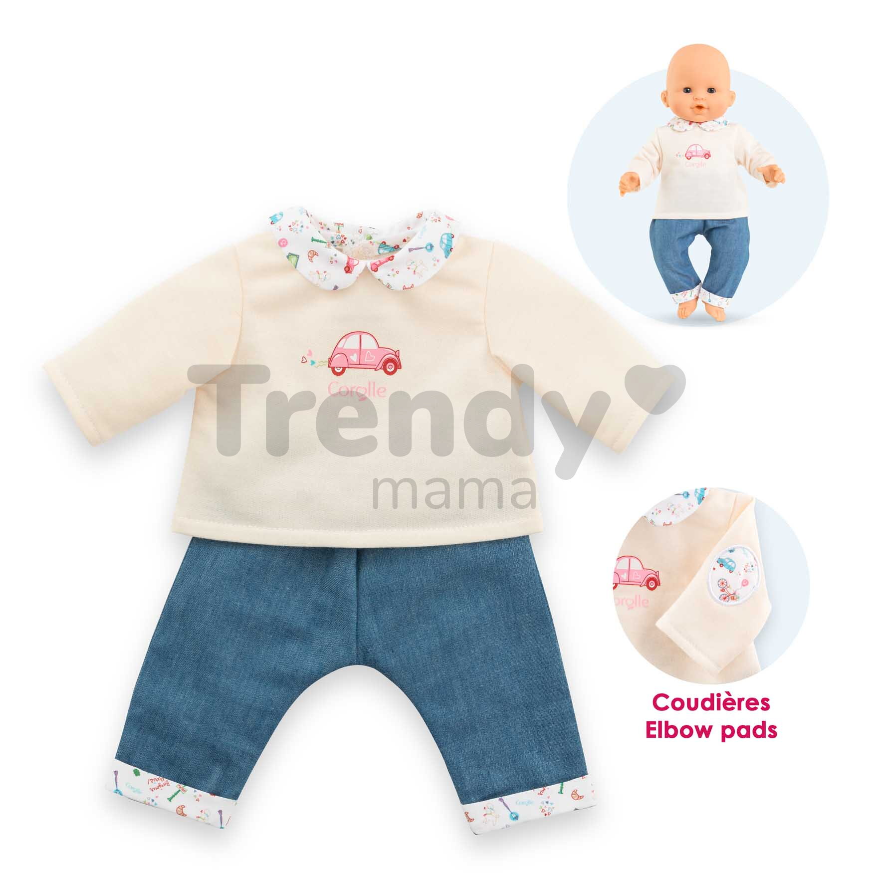 Vďaka týmto rifliam a tričku s roztomilými detailmi bude každá hra s bábikou Corolle nezabudnuteľná a deťom prinesie množstvo nových zážitkov a krásnych spomienok. So štýlovým oblečením Corolle môžu deti svoju bábiku prezliekať kedykoľvek sa im zachce. Dokonale prepracované detaily tohto oblečenia a prvotriedne materiály spestria každú hru s bábikou, ktorá rozvíja detskú fantáziu, ale aj komunikačné schopnosti a hmatovú citlivosť.