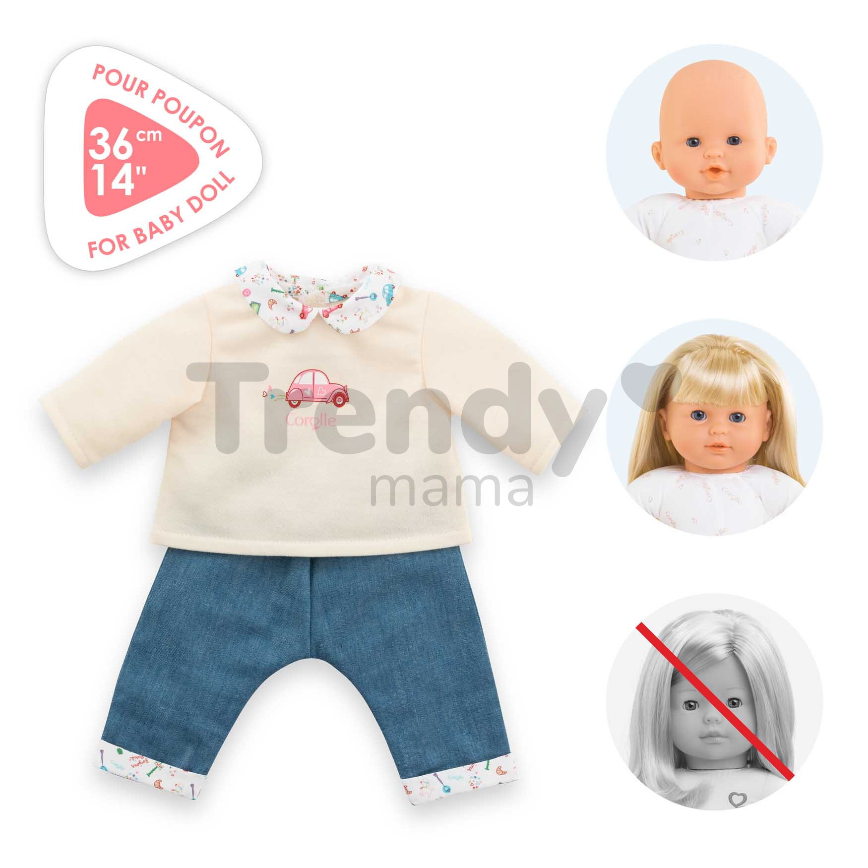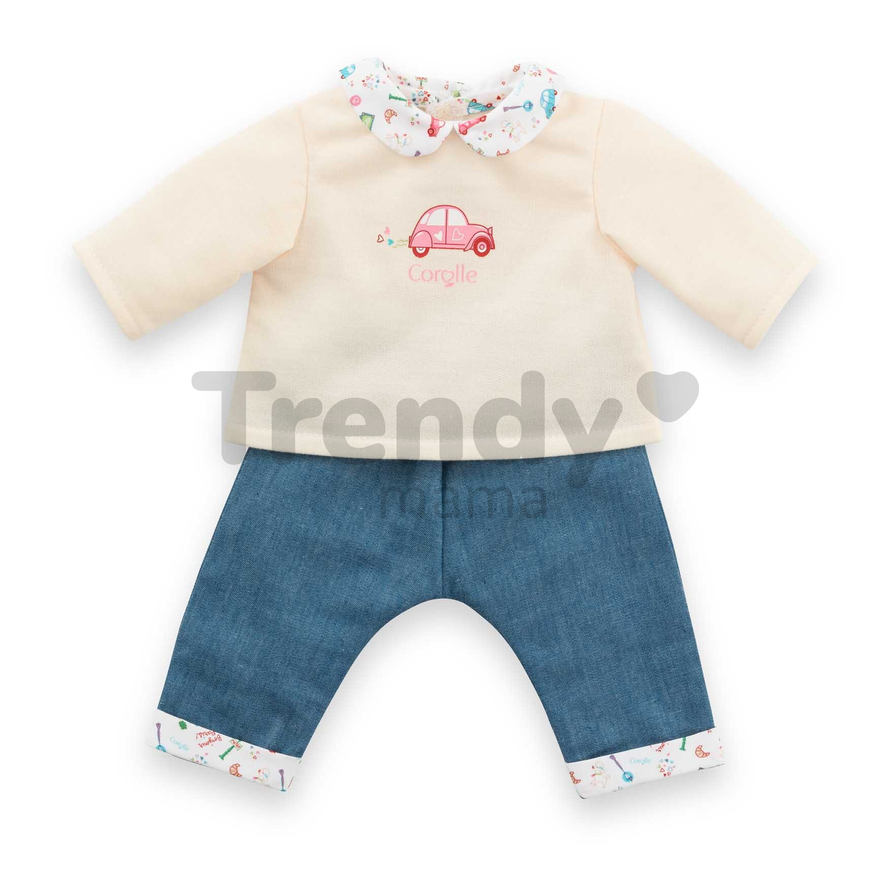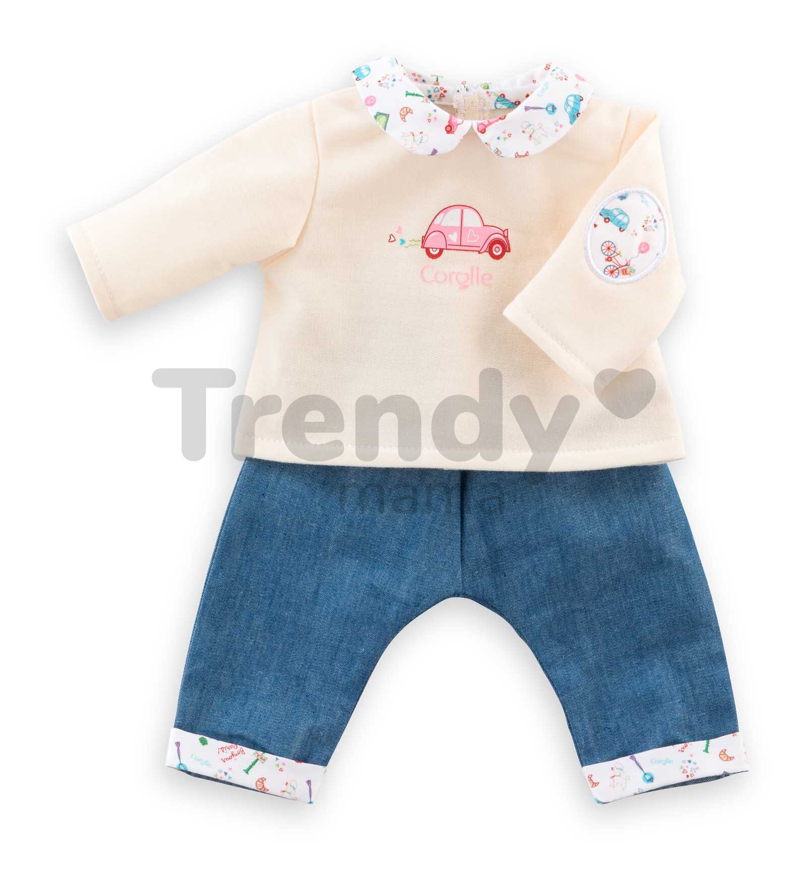 Vďaka týmto rifliam a tričku s roztomilými detailmi bude každá hra s bábikou Corolle nezabudnuteľná a deťom prinesie množstvo nových zážitkov a krásnych spomienok. So štýlovým oblečením Corolle môžu deti svoju bábiku prezliekať kedykoľvek sa im zachce. Dokonale prepracované detaily tohto oblečenia a prvotriedne materiály spestria každú hru s bábikou, ktorá rozvíja detskú fantáziu, ale aj komunikačné schopnosti a hmatovú citlivosť.